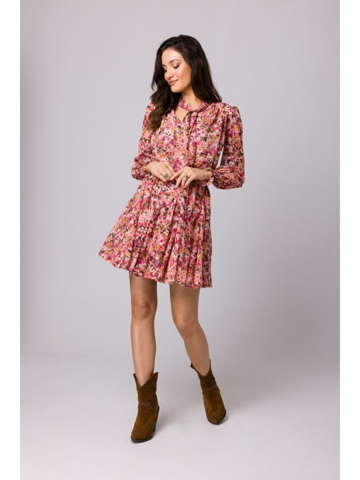 makover Ženska cvetlična obleka Samiet K167 svetlo roza L