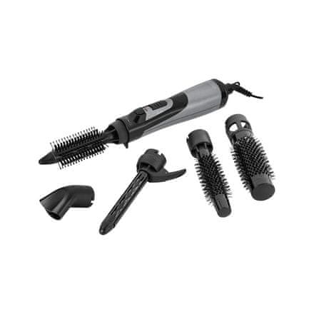 br />- Pritrditev s hladnim zrakom- Obesni trak za enostavno shranjevanje- Priročen kovček za enostavno shranjevanje in potovanje- Napajalni kabel: 1,8 m z vrtljivim koncem za 360°- 5 snemljivih nastavkov:- Šoba za zrak (koncentrator)- Točkovna rotacijska krtača- 19 mm kodralnik- 25 mm krtača za vro Celoten opis