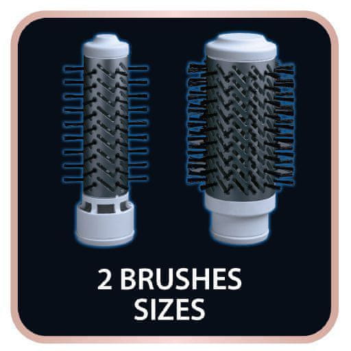 Dve velikosti ščetk sta prilagojeni različni dolžini las. Z manjšim lahko udobno oblikujete kratke lase in kodre.