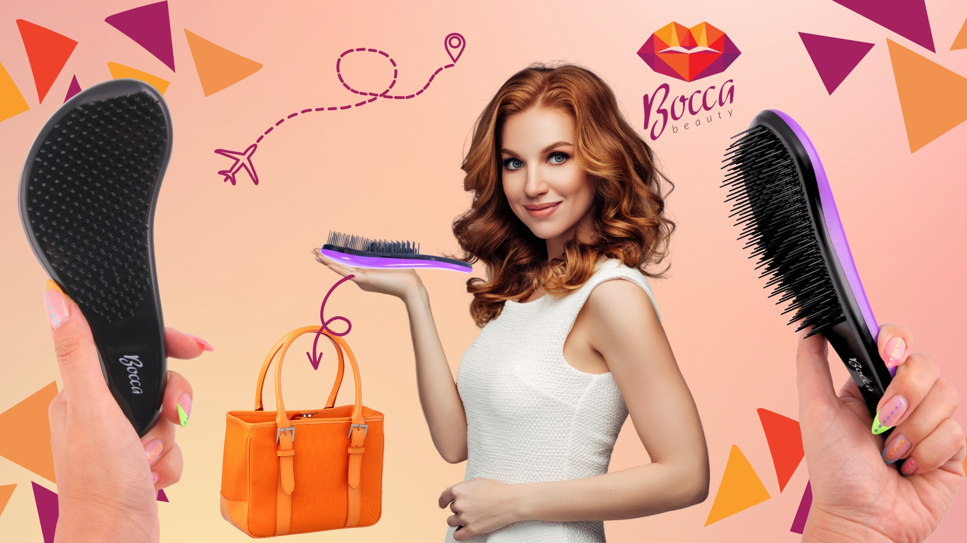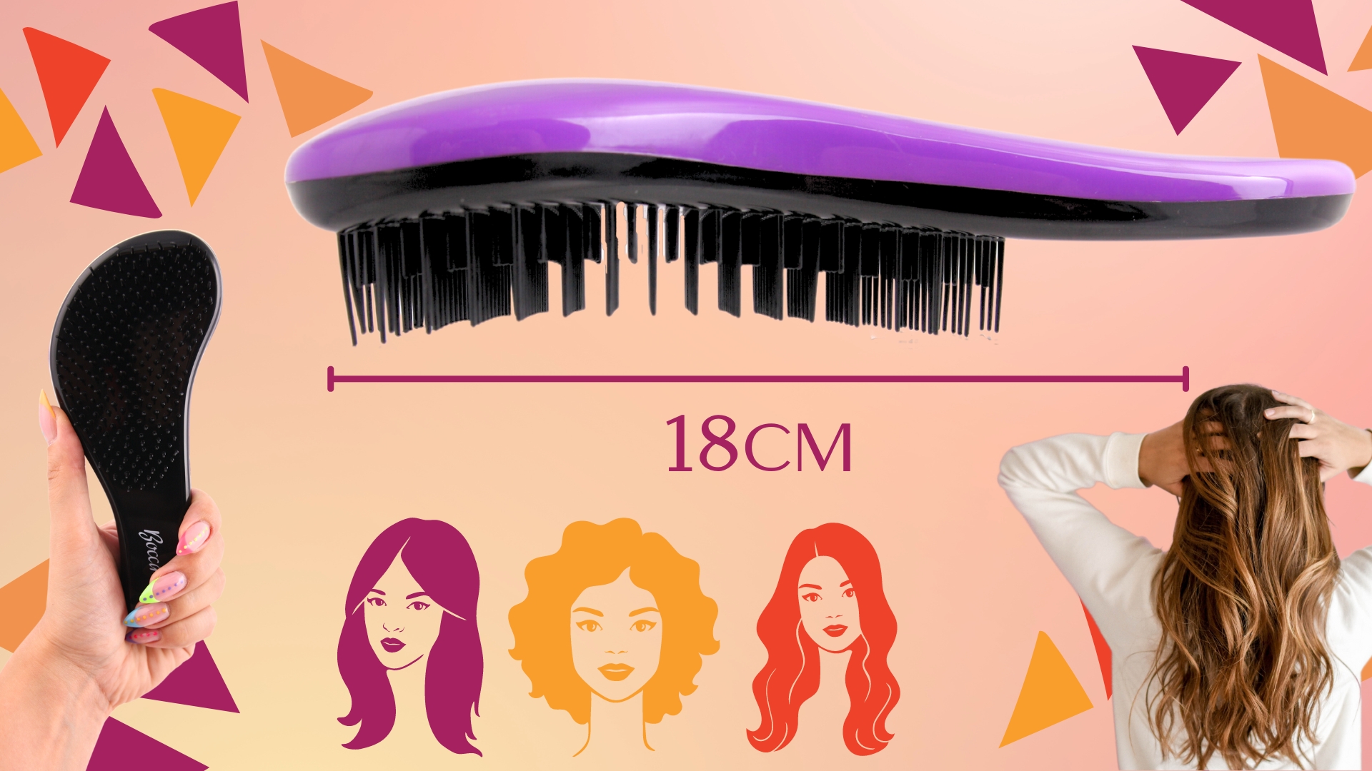 ➡️ Bocca Beauty krtača za lase z ročajem, ki ne vleče dlak – vijolična