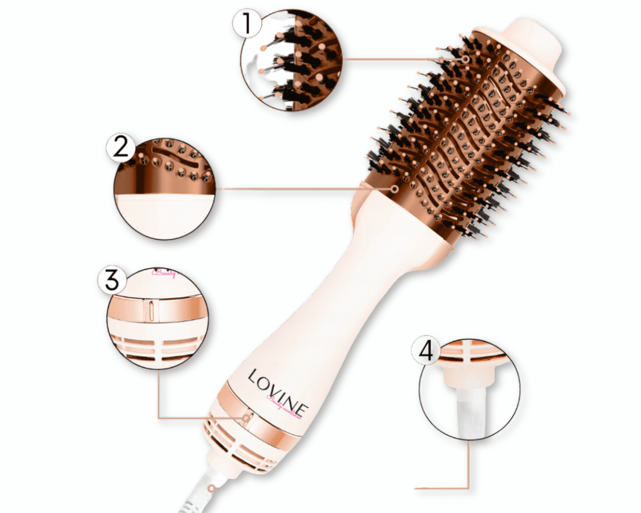 Kodralnik las z ionizatorjem 4v1 hitro posuši in neguje lase, ne da bi poškodoval njihovo strukturo.