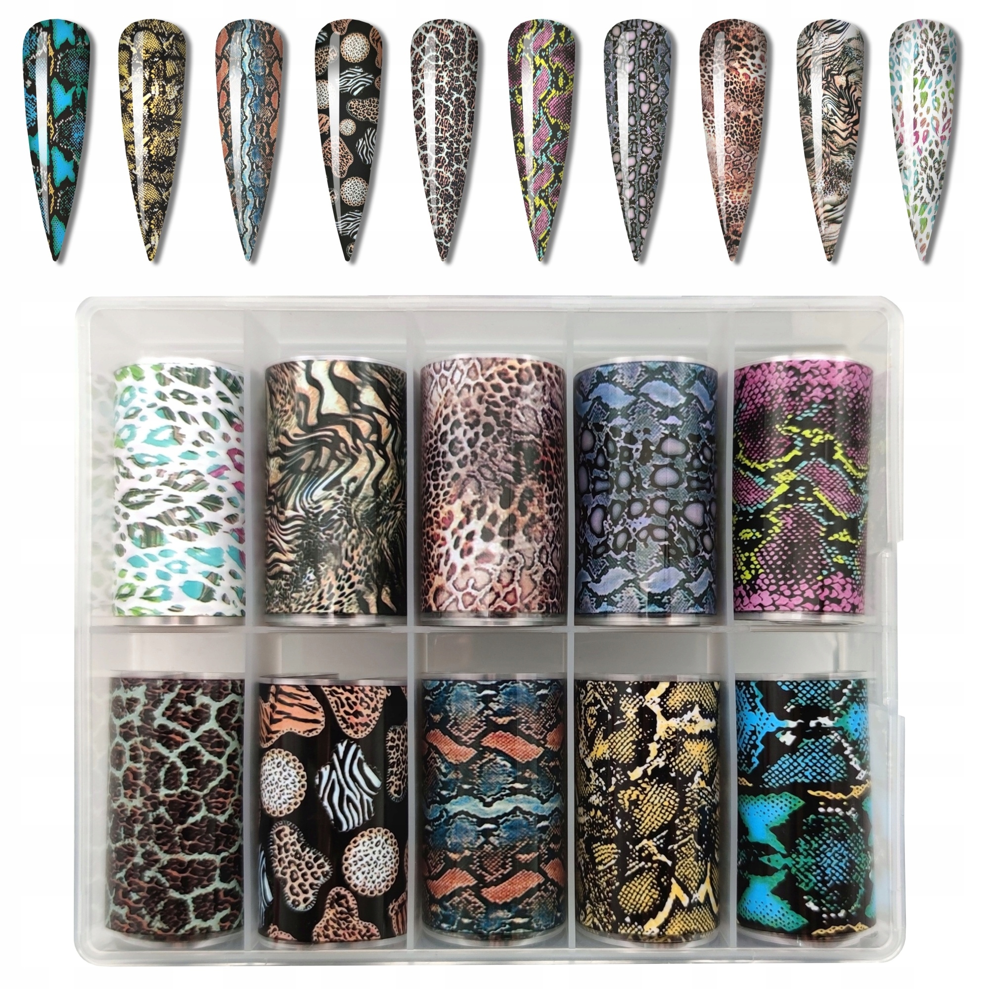 10× FOLIJA ZA PRENOS 10cmx4cm KOMPLET LEOPARD KAČA Celoten opis
