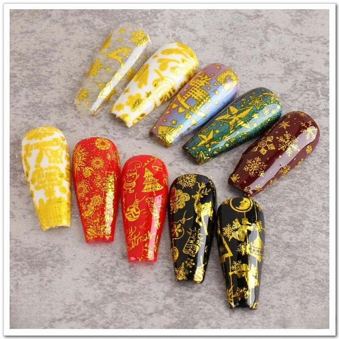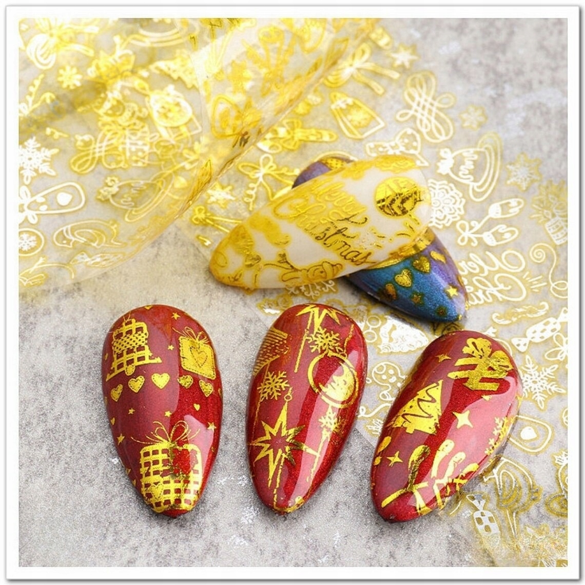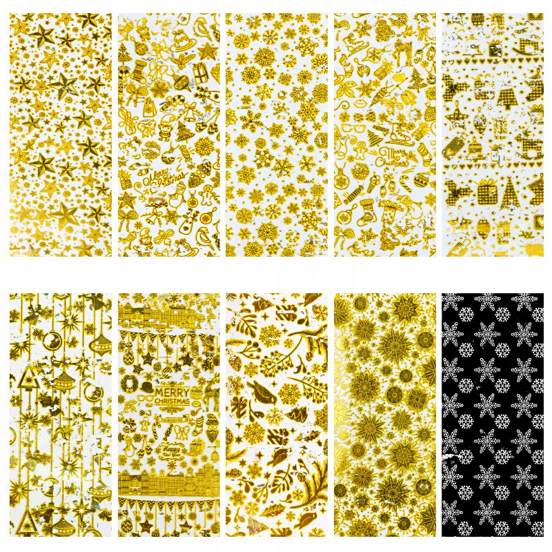 10× ZLATA BOŽIČNA FOLIJA ZA PRENOS NOHTOV 100 cm x 4 cm PRAZNIČNI KOMPLET Celoten opis