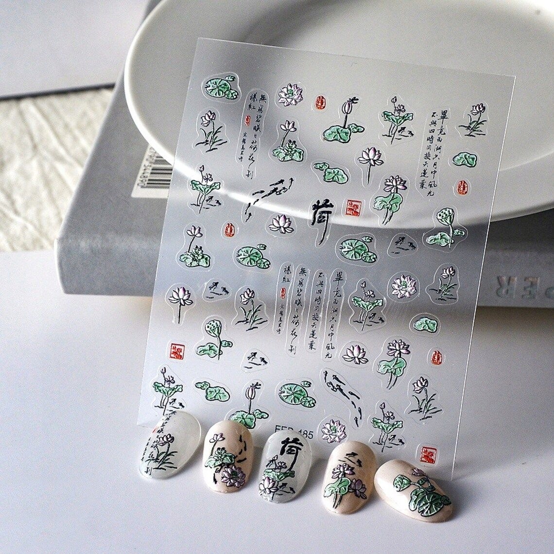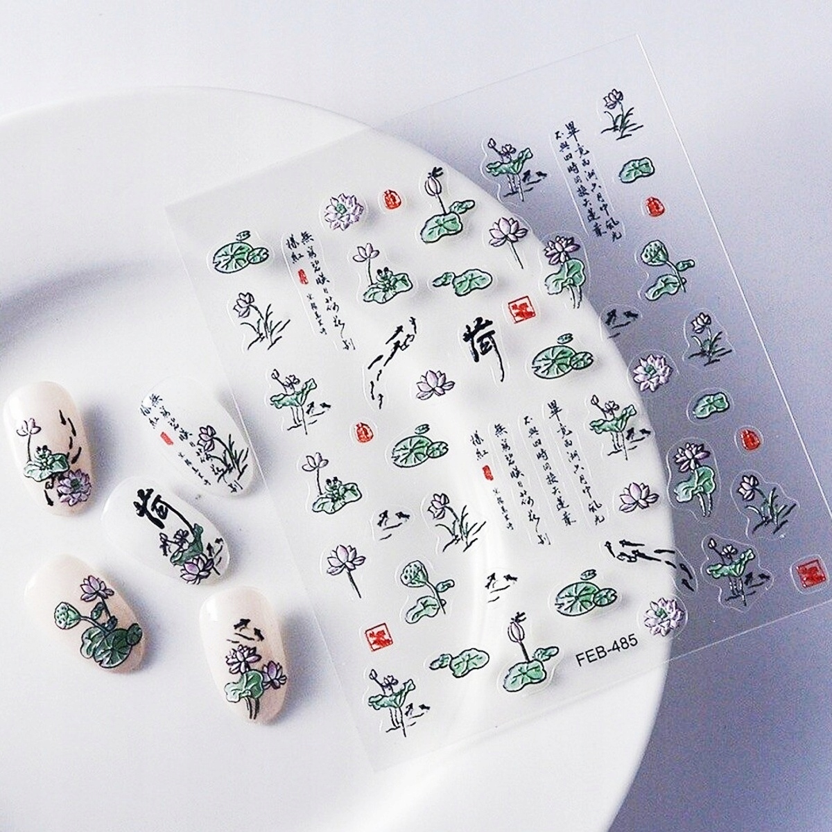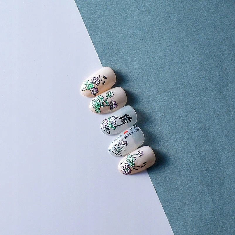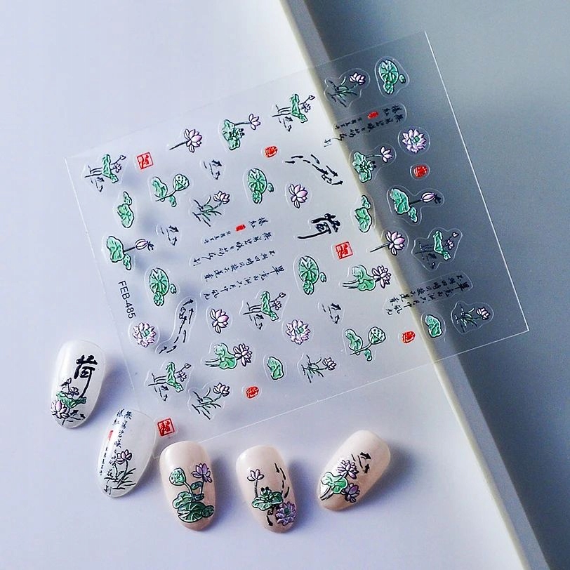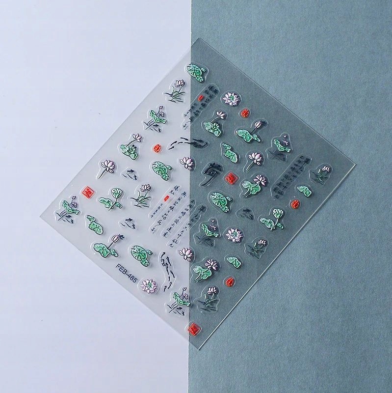 3D nalepke za nohte samolepilne konveksne vzorce lotosov cvet Celoten opis