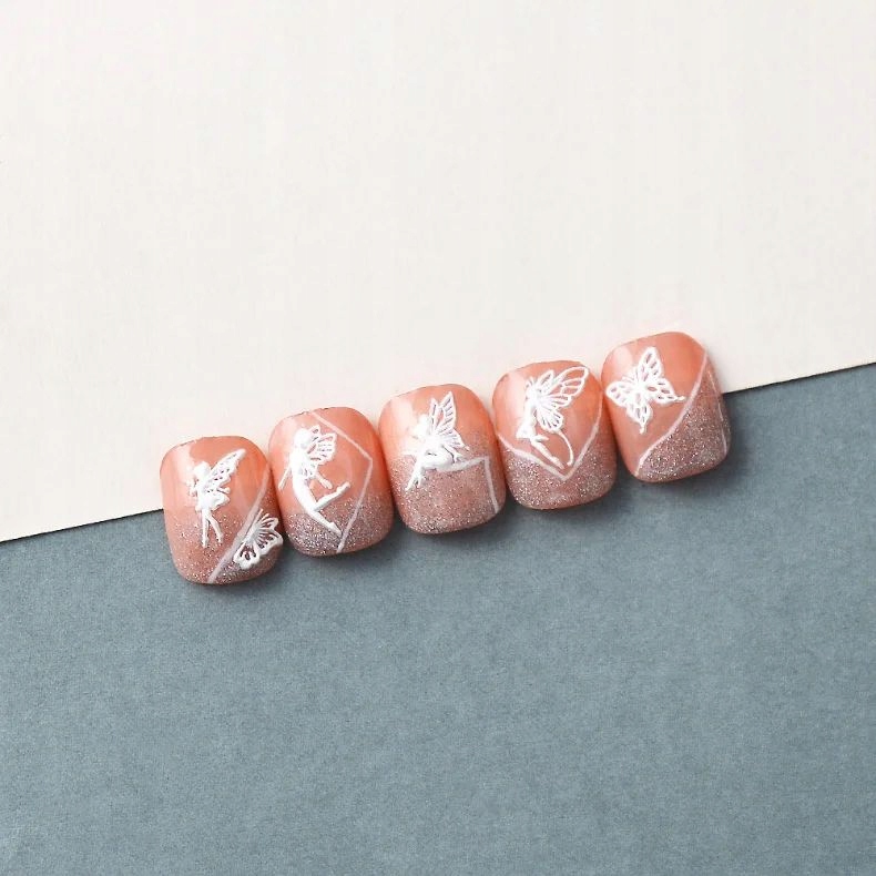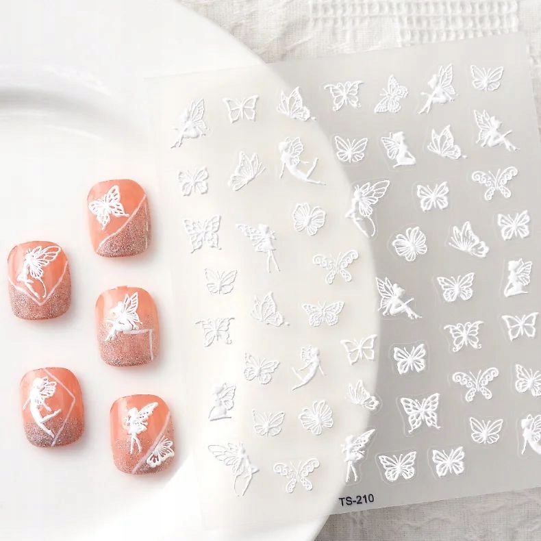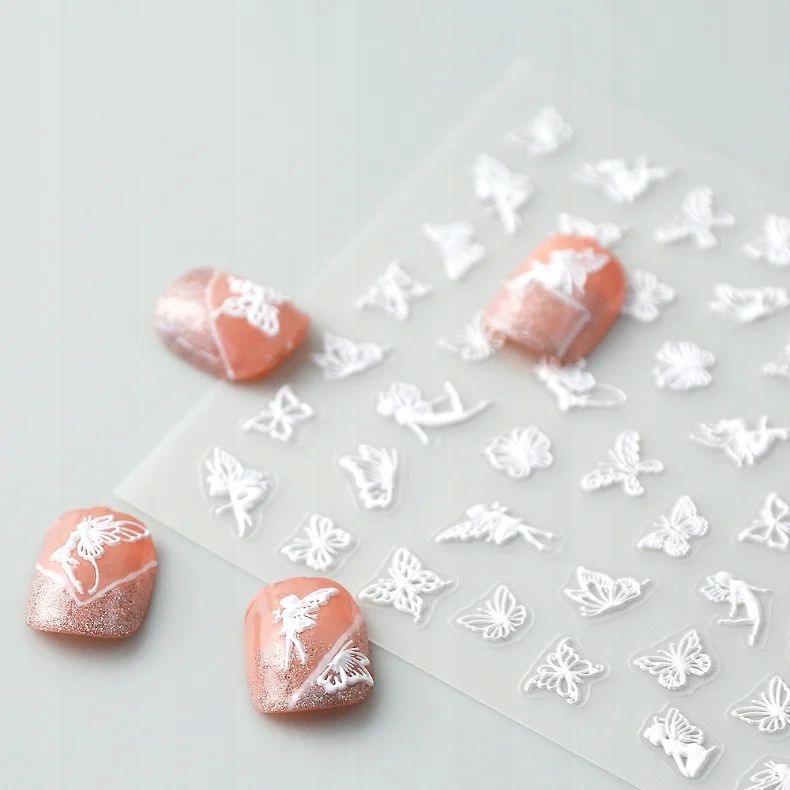 shumee Bele samolepilne 3D konveksne nalepke za nohte z vzorci metuljev in vile