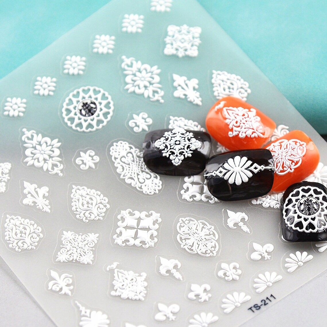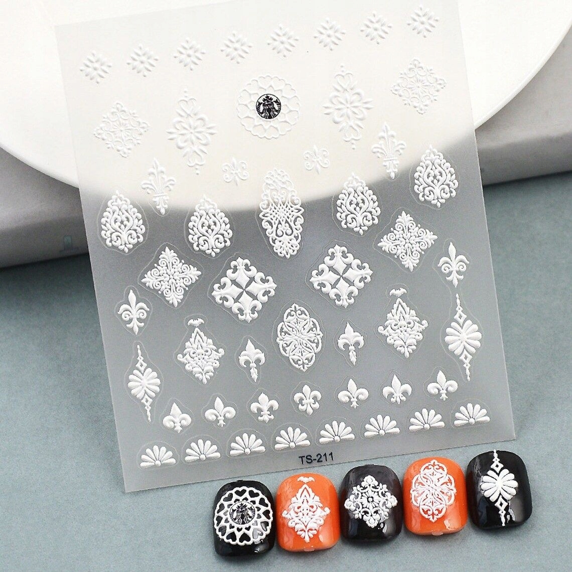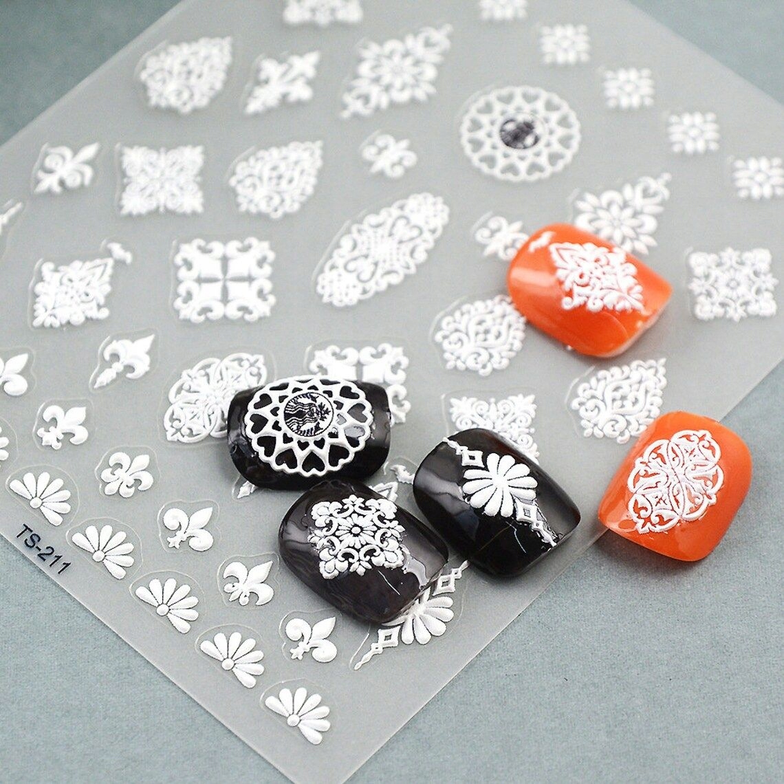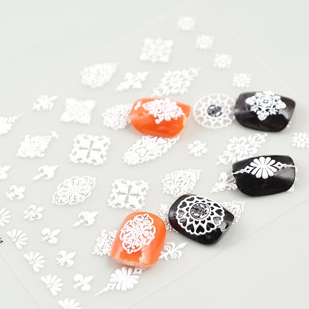 shumee Bele samolepilne 3D konveksne nalepke za nohte z vzorci ČIPKASTI OKRAS