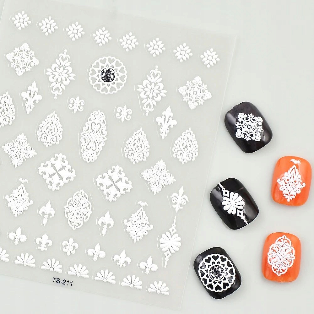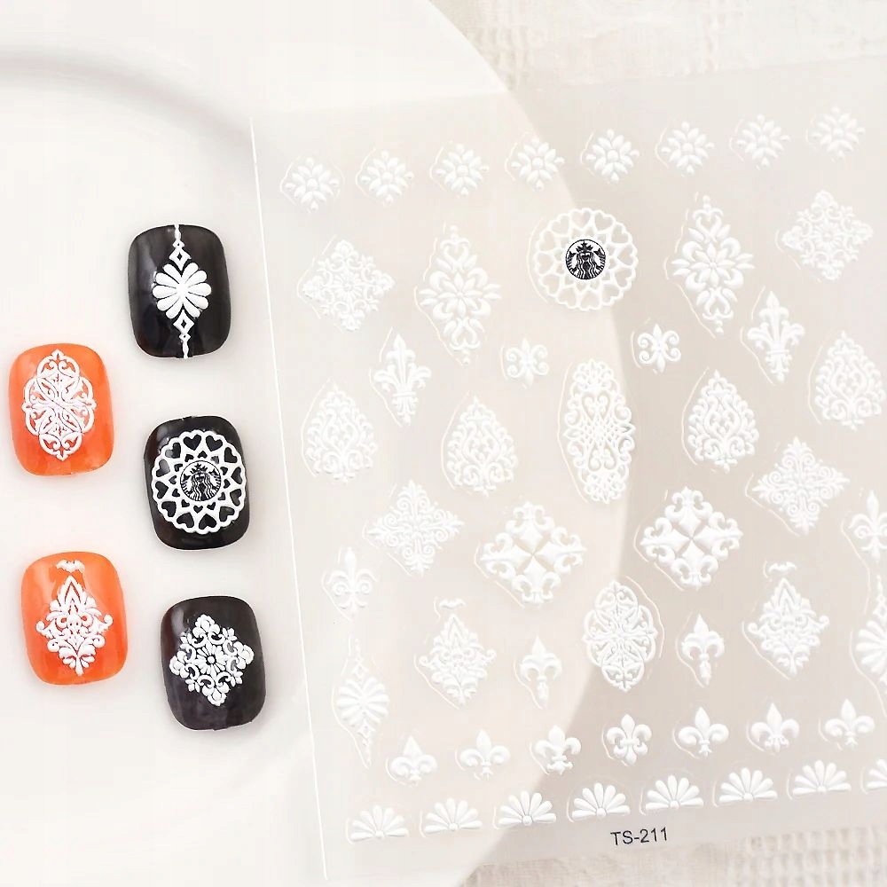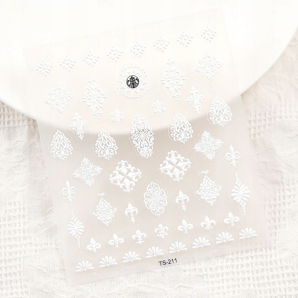 Bele samolepilne 3D konveksne nalepke za nohte z vzorci ČIPKASTI OKRAS Celoten opis