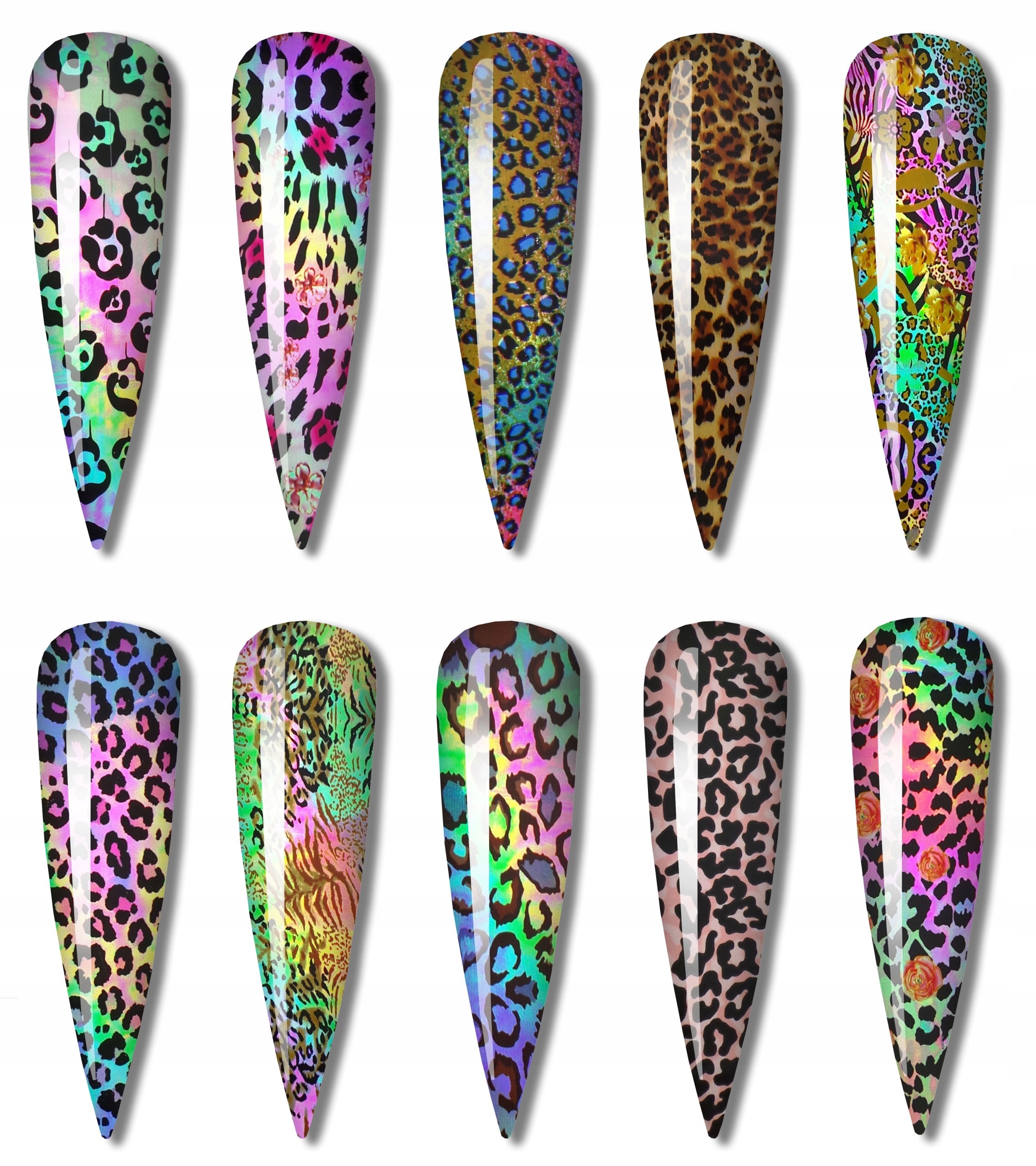 Transfer folija za dekoracijo nohtov – KOMPLET 10 kosov (10×4cm)