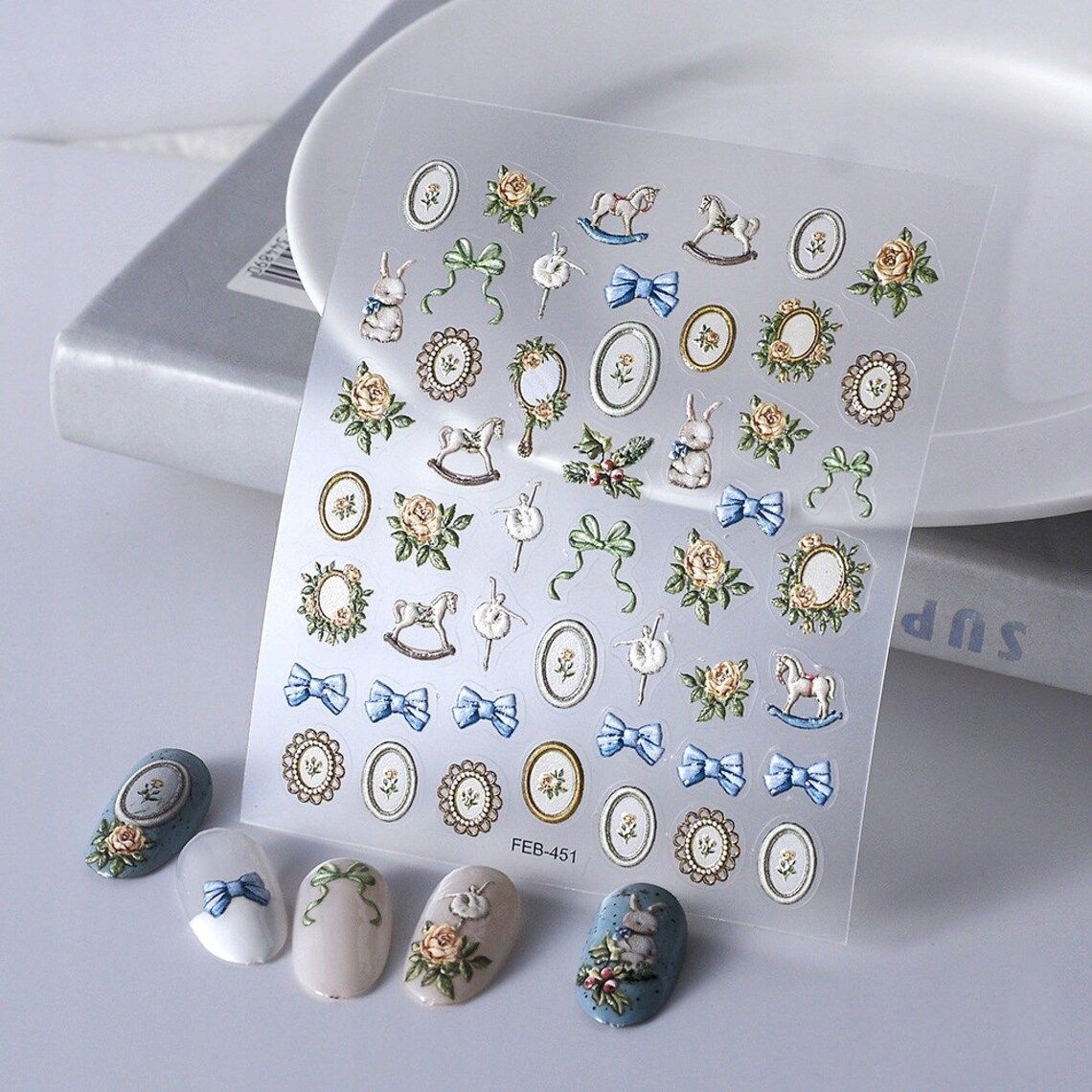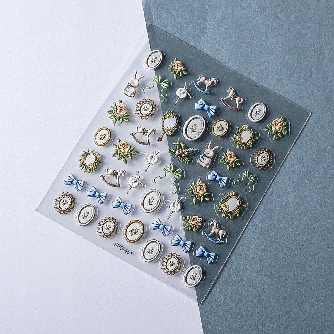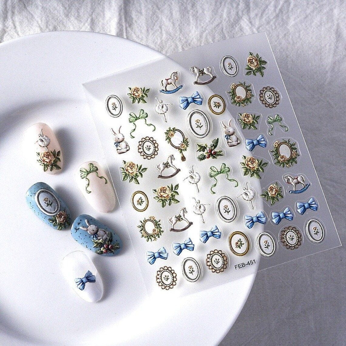 shumee RETRO 3D nalepke za nohte samolepilne konveksne vzorce ZIBAJALNI KONJIČEK