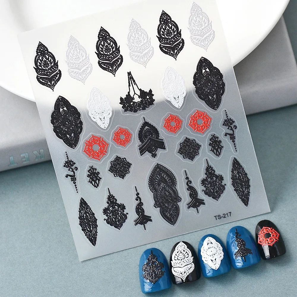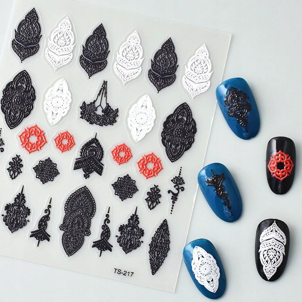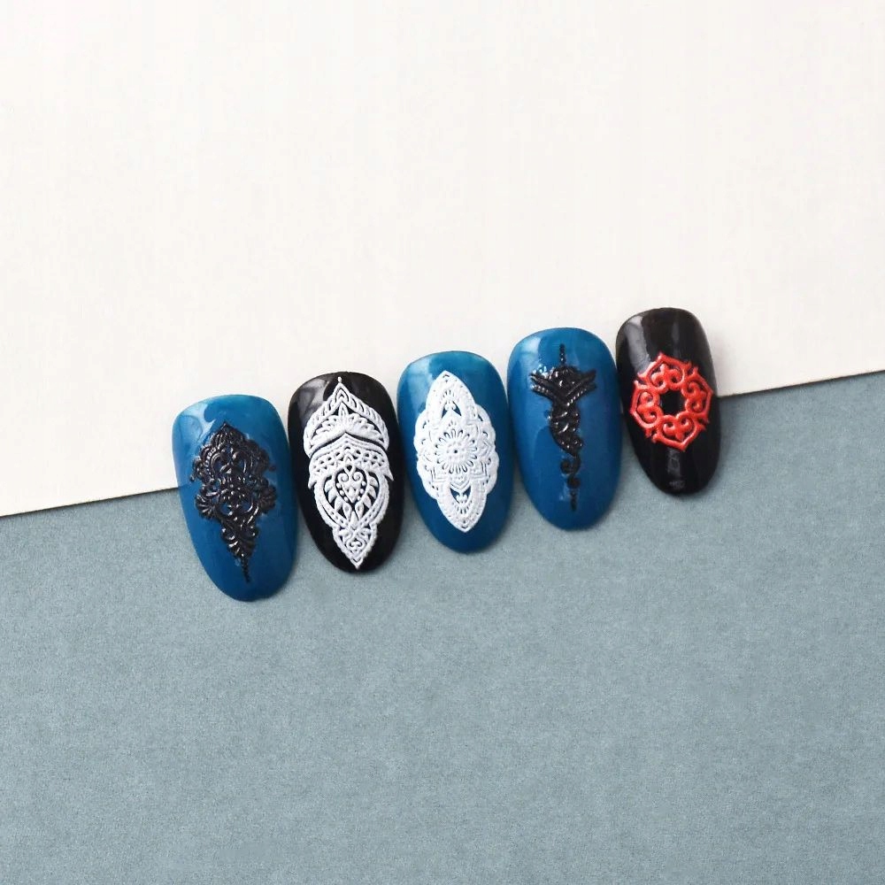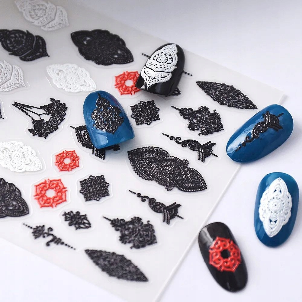 Samolepilne konveksne 3D nalepke za nohte z vzorci, okraski in čipko Celoten opis