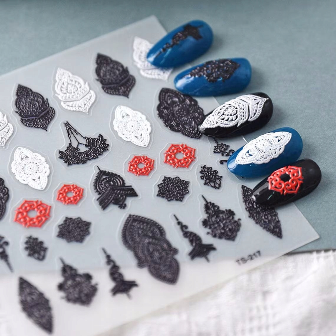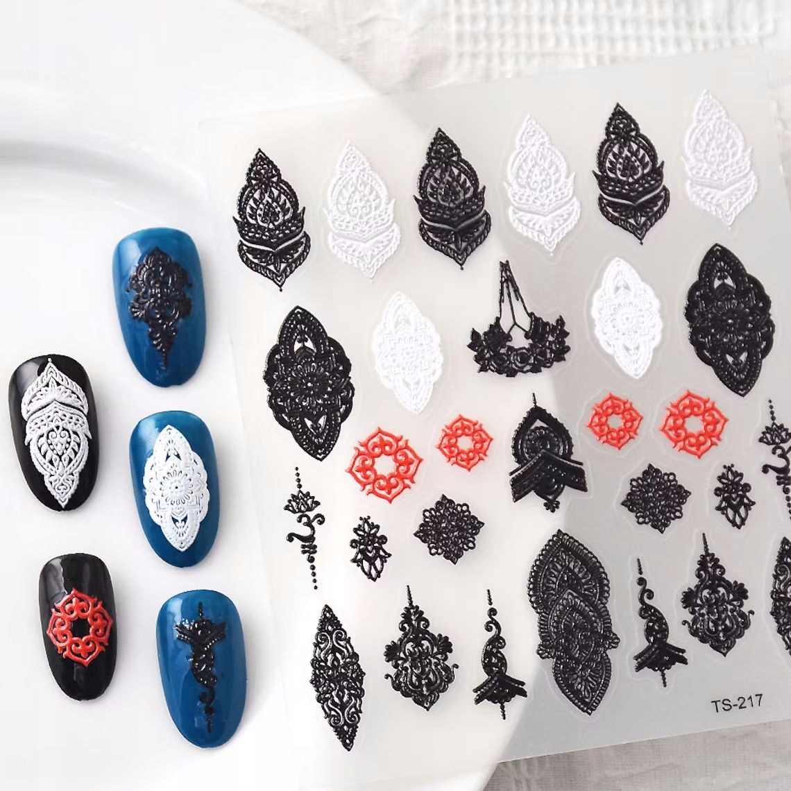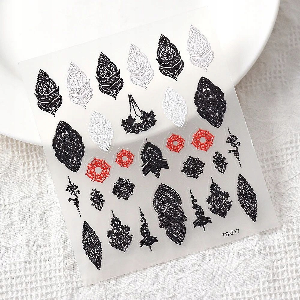 Samolepilne konveksne 3D nalepke za nohte z vzorci, okraski in čipko Celoten opis