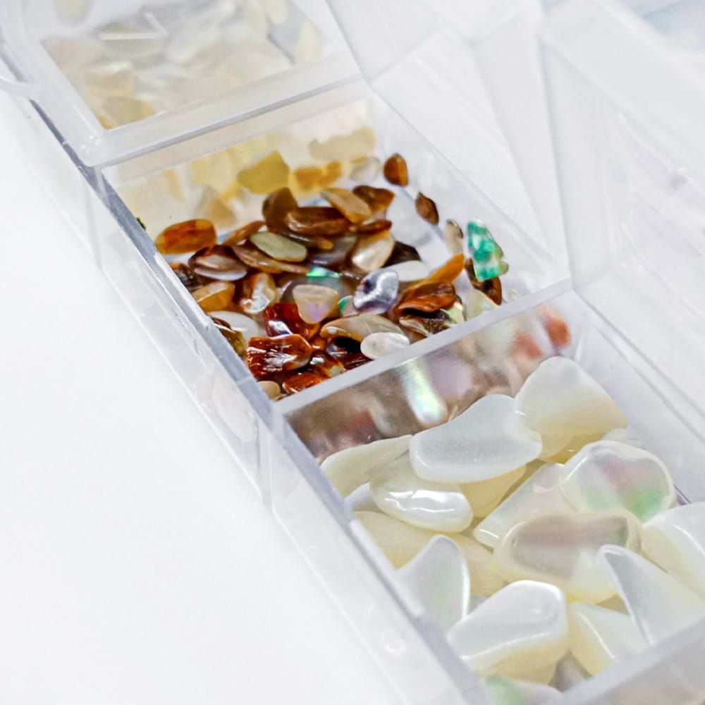 Zdrobljene školjke za dekoracijo nohtov v kaseti št. 2