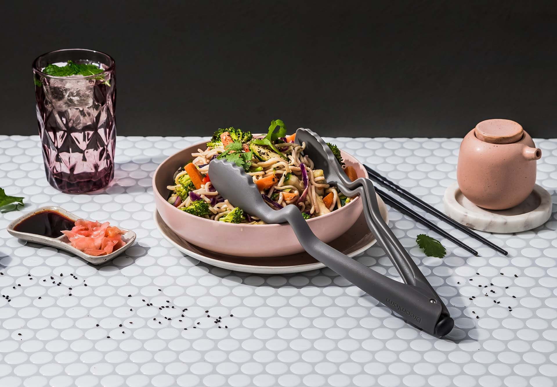 Prijemalka Clongs Lite znamke Dreamfarm se odpre ali zapre s pritiskom na gumb. Prijemalka je izdelana iz najlona. Oblikovana je tako, da se lopatki ne dotikata delovne površine, ko jo odložite – to zagotavlja čisto in varno pripravo hrane. Celoten opis
