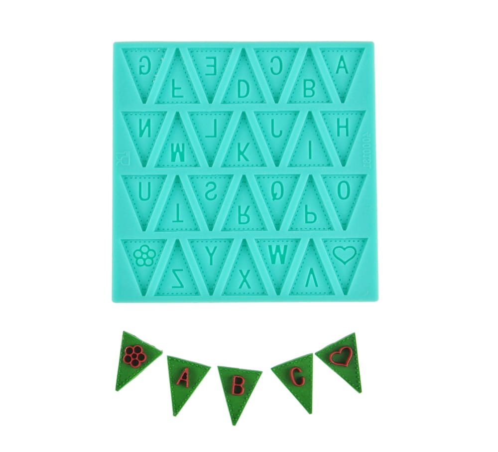 Visokokakovosten silikonski kalup za ustvarjanje okrasnih obeskov s črkami v obliki trikotne girlande. Idealen za izdelavo okraskov iz fondanta, čokolade, modelirne gline, mavca, voska, smole in mnogih drugih umetniških materialov.