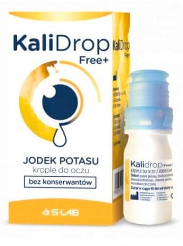 Kapljice za oči KaliDrop Free 10 mlKapljice se uporabljajo za vlaženje površine očesa in preprečevanje motnosti leče in steklovine. Kaj so kapljice Kalidrop Free? Kapljice vsebujejo natrijev hialuronat in kalijev jodid. Kalijev jodid pri lokalni uporabi deluje kot močan antioksidant na površini očesa, ki lovi proste radikale. Zato je odgovoren za zmanjšanje oksidativnega stresa in omejevanje nastanka motnosti leče in steklovine. Zaradi negativnega naboja molekule natrijevega hialuronata kažejo mukoadhezivne lastnosti, kar pomeni, da se med mežikanjem enakomerno porazdelijo po površini roženice, kjer interagirajo z mucinsko plastjo solznega filma, izboljšajo njeno stabilizacijo in izboljšajo raven hidracije očesne površine. Za kaj se uporabljajo kapljice Kalidrop Free? Kapljice se uporabljajo za vlaženje površine očesa in preprečevanje motnosti leče in steklovine. Kako pogosto se lahko uporabljajo kapljice Kalidrop Free? Po potrebi je treba v konjunktivalno vrečko vkapati eno kapljico. Ker kapljice ne vsebujejo konzervansov, jih lahko uporabljajo vsakodnevno, tudi uporabniki vseh vrst kontaktnih leč. Običajno se ena kapljica vkapa 3–4-krat na dan v konjunktivalno vrečko vsakega očesa. Pri hujših simptomih je možno pogostejše dajanje. Kako uporabljati kapljice Kalidrop Free? Kapljice za oči se smejo nanašati samo zunanje v konjunktivalno vrečko. NAVODILA ZA UPORABO: Sterilne kapljice za oči brez konzervansov. Pred uporabo si temeljito umijte roke. Pred vsako uporabo odstranite zaščitni pokrovček s kapalke. Ne dotikajte se konice kapalke. Glavo rahlo nagnite nazaj. Stekleničko držite z odprtino navzdol (navpično). Spodnjo veko rahlo povlecite navzdol in s pritiskom na stekleničko vkapajte eno kapljico v konjunktivalno vrečko. Po vkapanju kapljic zaprite veke in premaknite zrklo, da kapljice porazdelite po površini očesa. Iste korake ponovite za drugo oko. Po uporabi namestite zaščitni pokrovček nazaj na kapalko. Pri nanašanju kapljic pazite, da se s konico kapalke ne dotaknete površine očesa ali veke. Po nanosu pripravka površine očesa ne nanašajte/izpirajte z vodo ali katero koli drugo tekočino. Kdaj kapljic Kalidrop Free ne smete uporabljati? Ne uporabljajte v primeru preobčutljivosti na katero koli sestavino pripravka. V primeru alergijske reakcije prenehajte z uporabo. Ne uporabljajte v primeru bakterijskih, virusnih ali glivičnih okužb. Kaj vsebujejo kapljice Kalidrop Free? Natrijev hialuronat 1 mg/ml, kalijev jodid 5 mg/ml, borova kislina, natrijev tetraborat, natrijev klorid, visoko prečiščena voda. Na kaj morate biti pozorni med shranjevanjem? Shranjujte izven dosega otrok. Hranite ločeno od virov toplote. Shranjujte na suhem mestu pri temperaturi med 5 °C in 35 °C. Ne uporabljajte po datumu izteka roka uporabnosti, natisnjenem na embalaži. Od datuma prvega odprtja ne uporabljajte več kot 30 dni neprekinjeno in ne dlje kot 90 dni s prekinitvami (upoštevajte, da je treba vso neporabljeno raztopino zavreči). Opozorila in previdnostni ukrepi: Ta izdelek je namenjen samo za zunanjo uporabo. Ne uporabljajte, če je embalaža poškodovana. Nikoli se ne dotikajte očesa ali drugih površin s konico kapalke, saj lahko to kontaminira raztopino. Če uporabljate druga oftalmološka zdravila, počakajte vsaj 15 minut, preden daste kapljice. Ta izdelek je treba aplicirati zadnji. Ta medicinski pripomoček za večkratno uporabo naj uporablja samo ena oseba. Ne uporabljajte pri bolnikih z disfunkcijo ščitnice. Medicinski pripomoček – oznaka CE. Priložena je izjava EU o skladnosti. Vključuje navodila za uporabo in vmesnik v poljščini. Vključuje nalepko v poljščini. Proizvajalec: S-lab, s sedežem v Mirkówu, ul. Kiełczowska 2