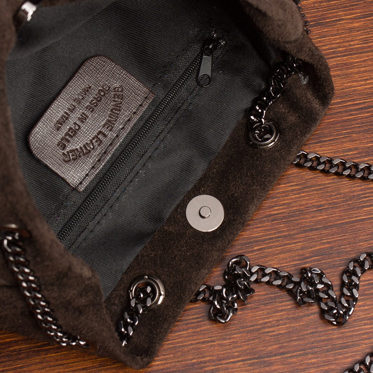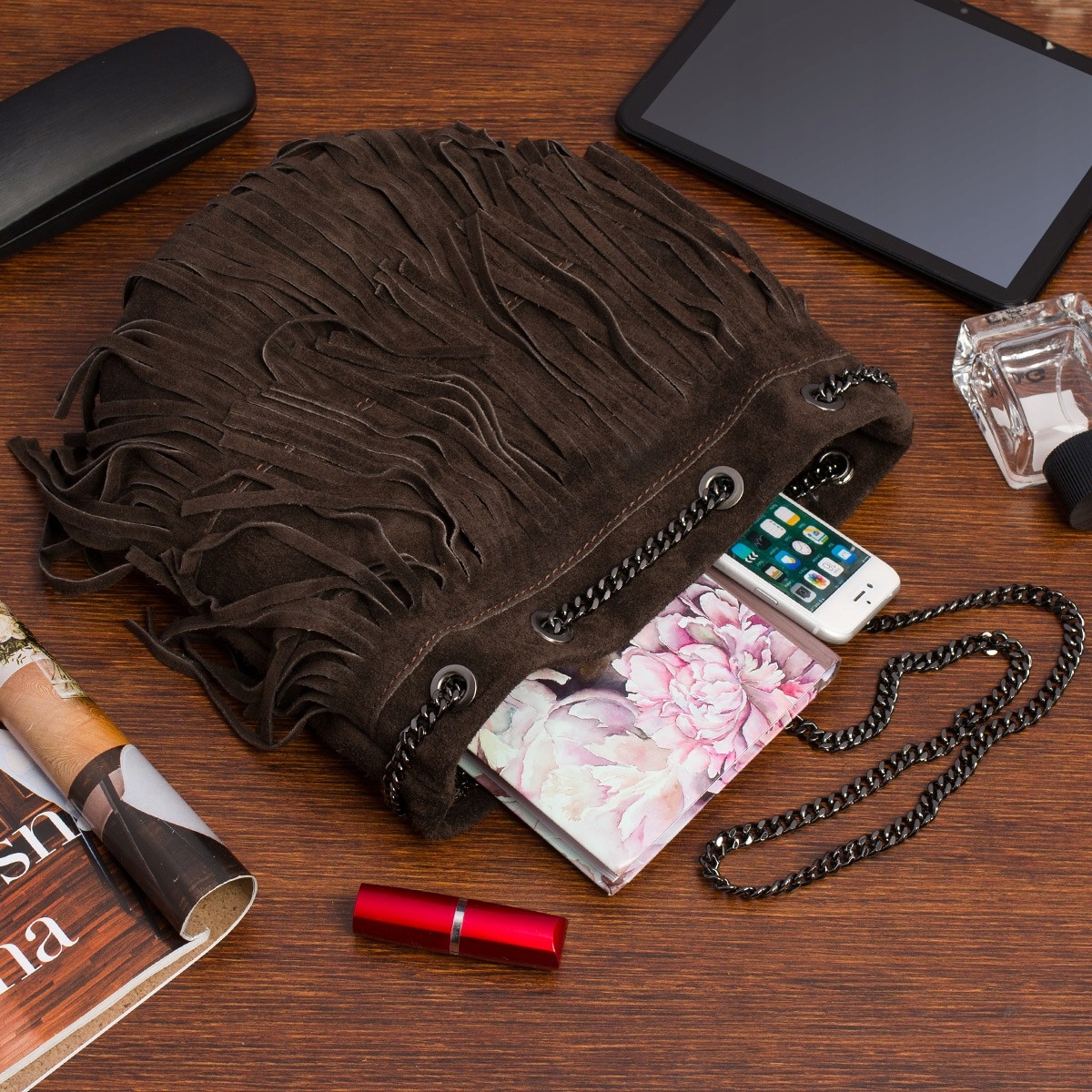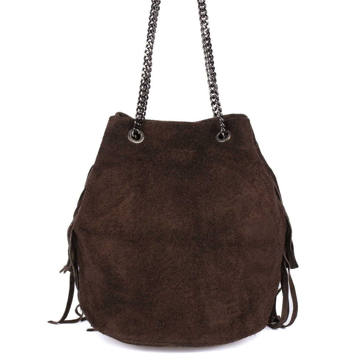 Ženska torba, usnjena semiša, resice, naramnice, verižica, italijanska Celoten opis