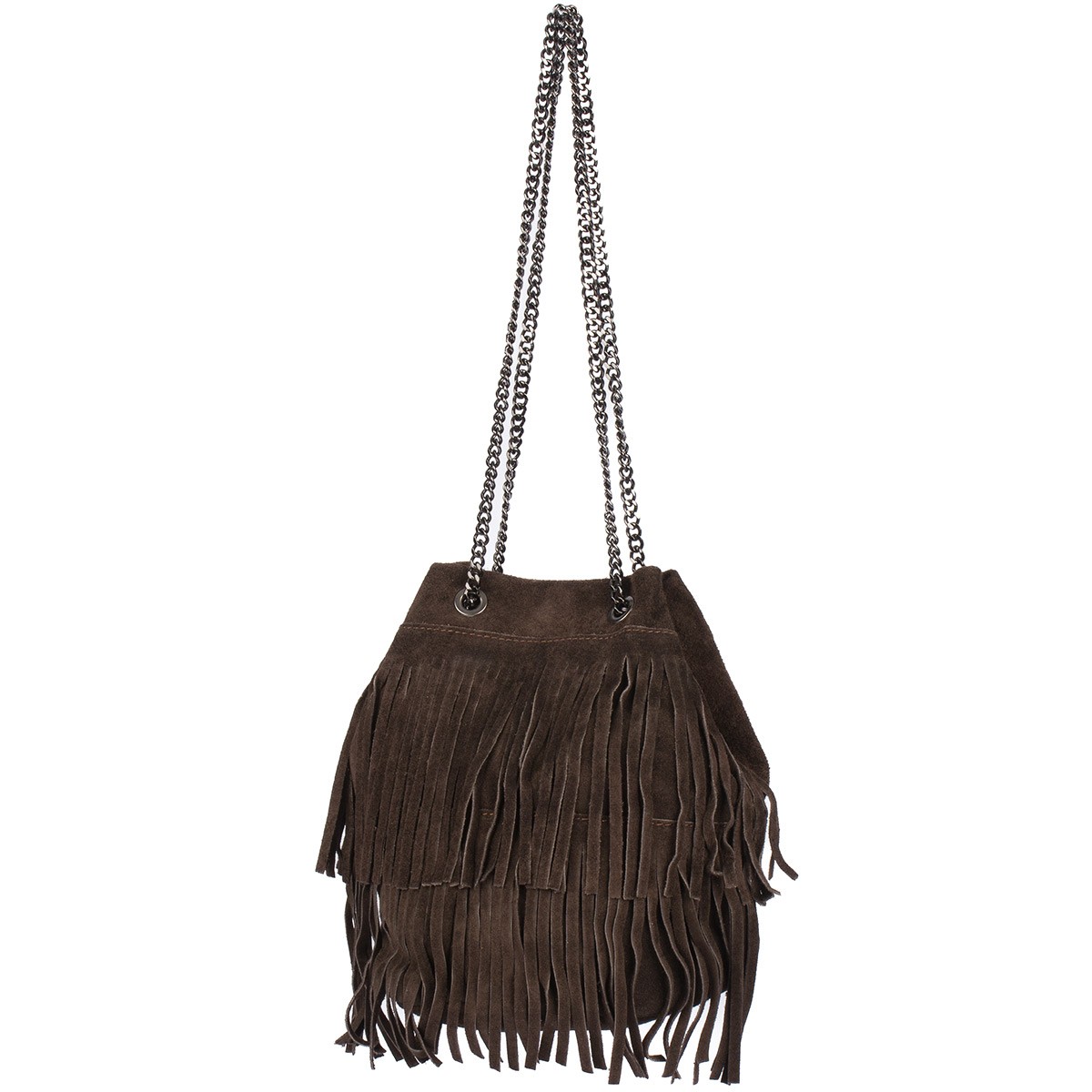 shumee Ženska torba, usnjena semiša, resice, naramnice, verižica, italijanska