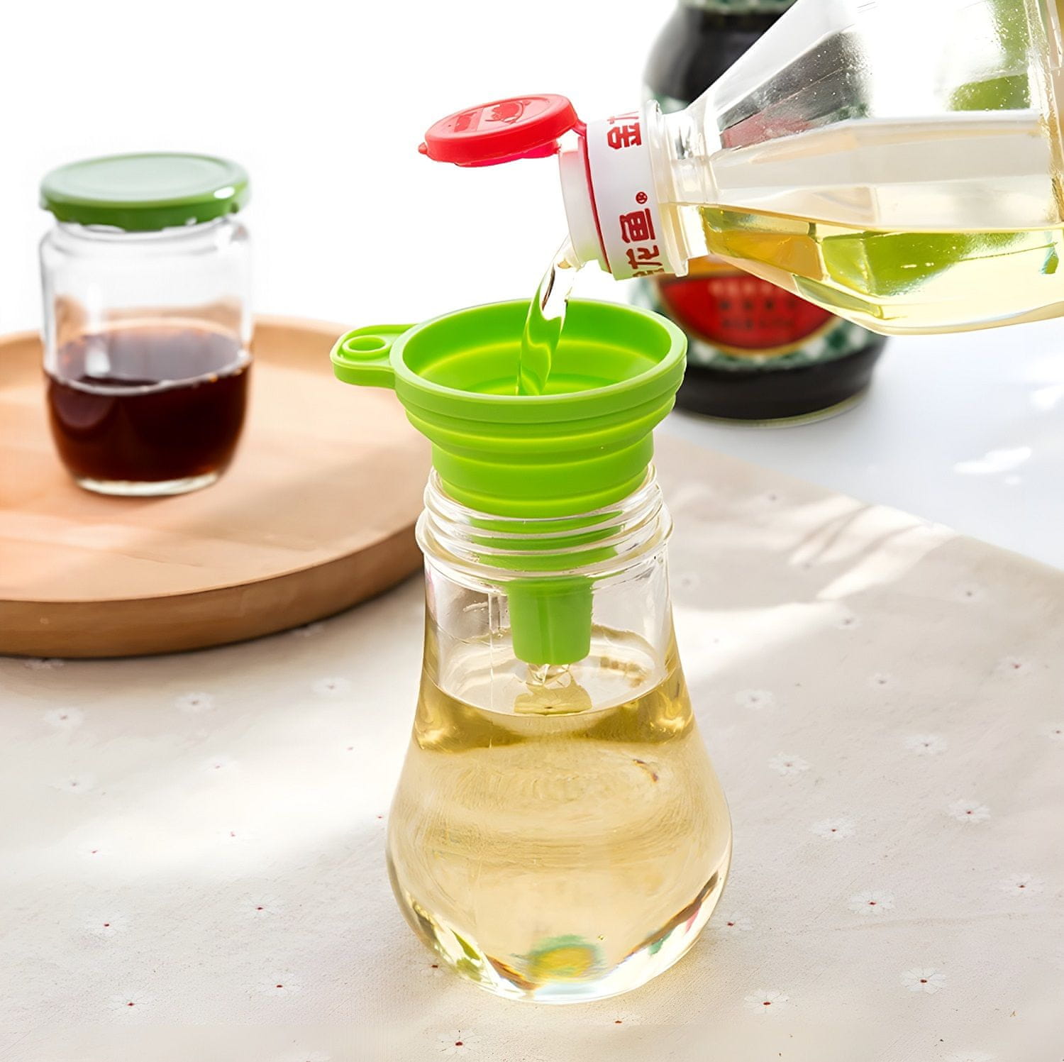 Priročen in praktičen, okrogel, silikonski lijak s premerom 1 cm. Omogoča enostavno prelivanje in prelivanje živilskih izdelkov iz embalaže v embalažo.