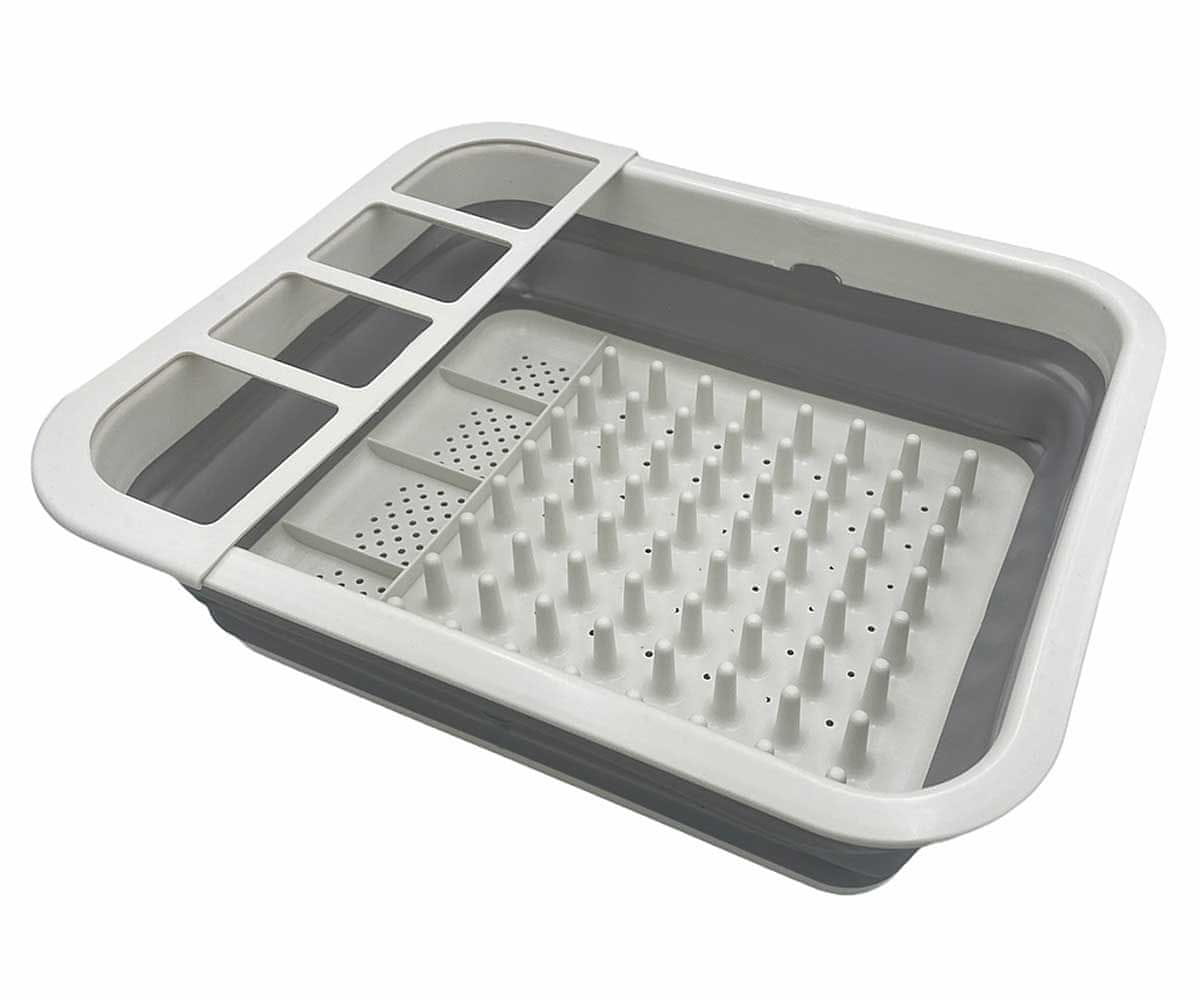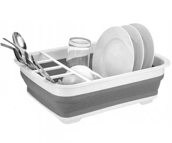 Kakovosten silikonski sušilni stroj. Zahvaljujoč možnosti zlaganja ga lahko brez uporabe enostavno shranimo v predal ali omarico.