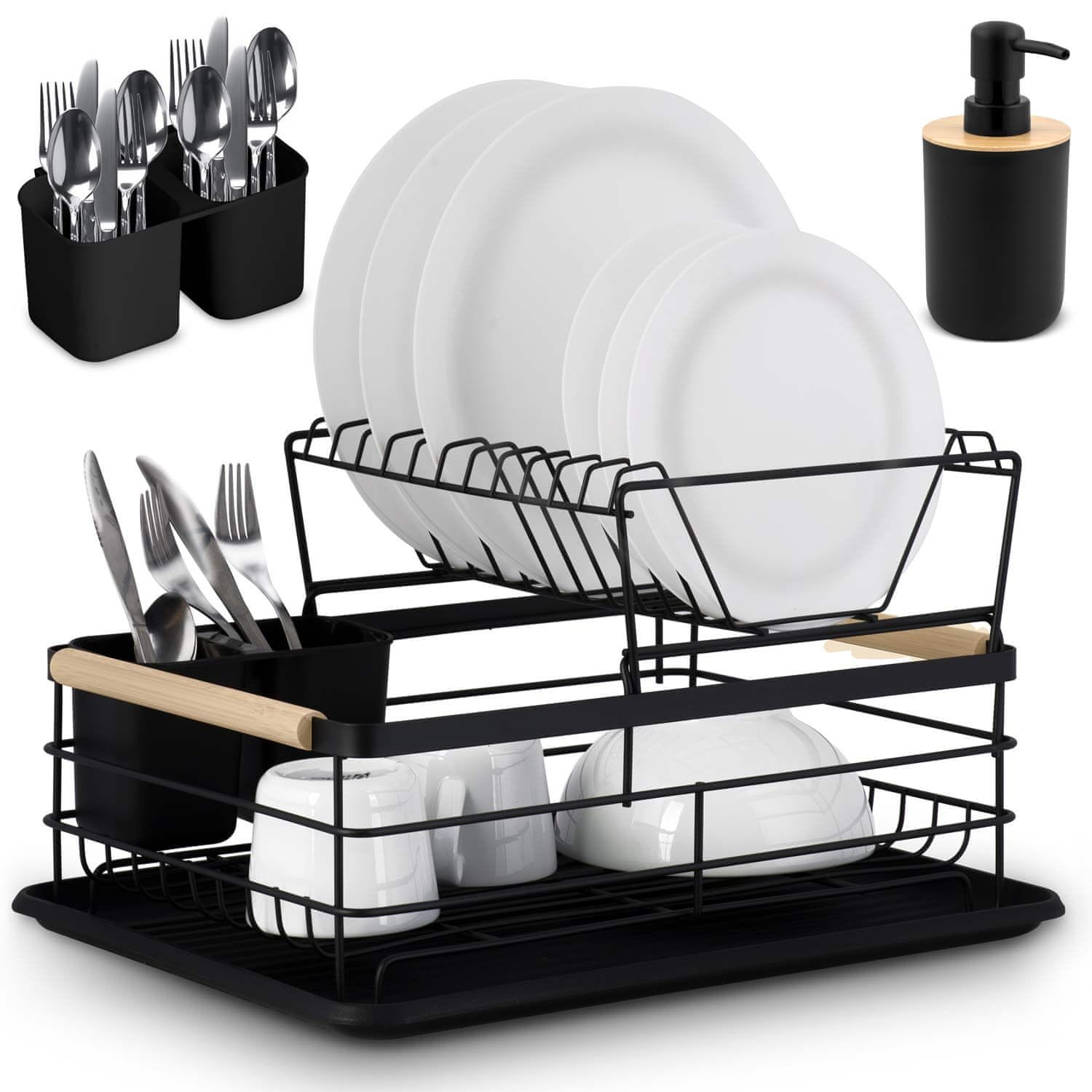 ✅ čvrsta in elegantna, ✅ moderen in minimalističen bo krasil vsak pult, ✅ vzdržljiva prašno lakirana konstrukcija, odporna na rjo in praske, ✅ vključen pladenj za odcejanje (ščiti pult pred mokroto), ✅ odcejalnik za jedilni pribor, ✅ BREZPLAČNO ✅ dozirnik za milo/tekočino za pomivanje posode, ✅ ročaji so izdelani iz visokokakovostnega lesa, zato je oljenje z oljem za les priporočljivo enkrat na 4 mesece, ✅ Dimenzije 43 × 32 × 27 cm.
