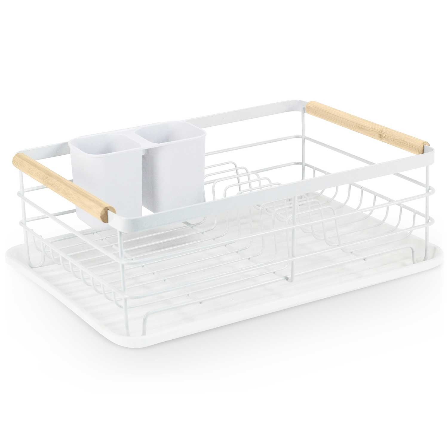 ✅ Čvrst in eleganten, ✅ Moderen in minimalističen bo krasil vsak pult, ✅ Trpežna praškasto lakirana konstrukcija, odporna na rjo in praske, ✅ Vključuje pladenj za odcejanje (ščiti pult pred mokroto), ✅ Odcejalnik za jedilni pribor, ✅ Ročaji so izdelani iz visokokakovostnega lesa, zato je priporočljivo oljenje z oljem za les vsake 4 mesece, ✅ Dimenzije: 43 × 32 × 14 cm.