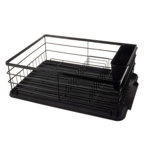 Velika črna pomivalnica za posodo z odkapalnikom je stilski element iz kakovostnega kromiranega kovin in trdne plastike, ki se ujema z modernim interierjem. Ima dimenzije 44 × 31 × 14,5 cm in težo 1,06 kg, ter je opremljena s pladnjem za enostavno odvajanje vode. Celoten opis