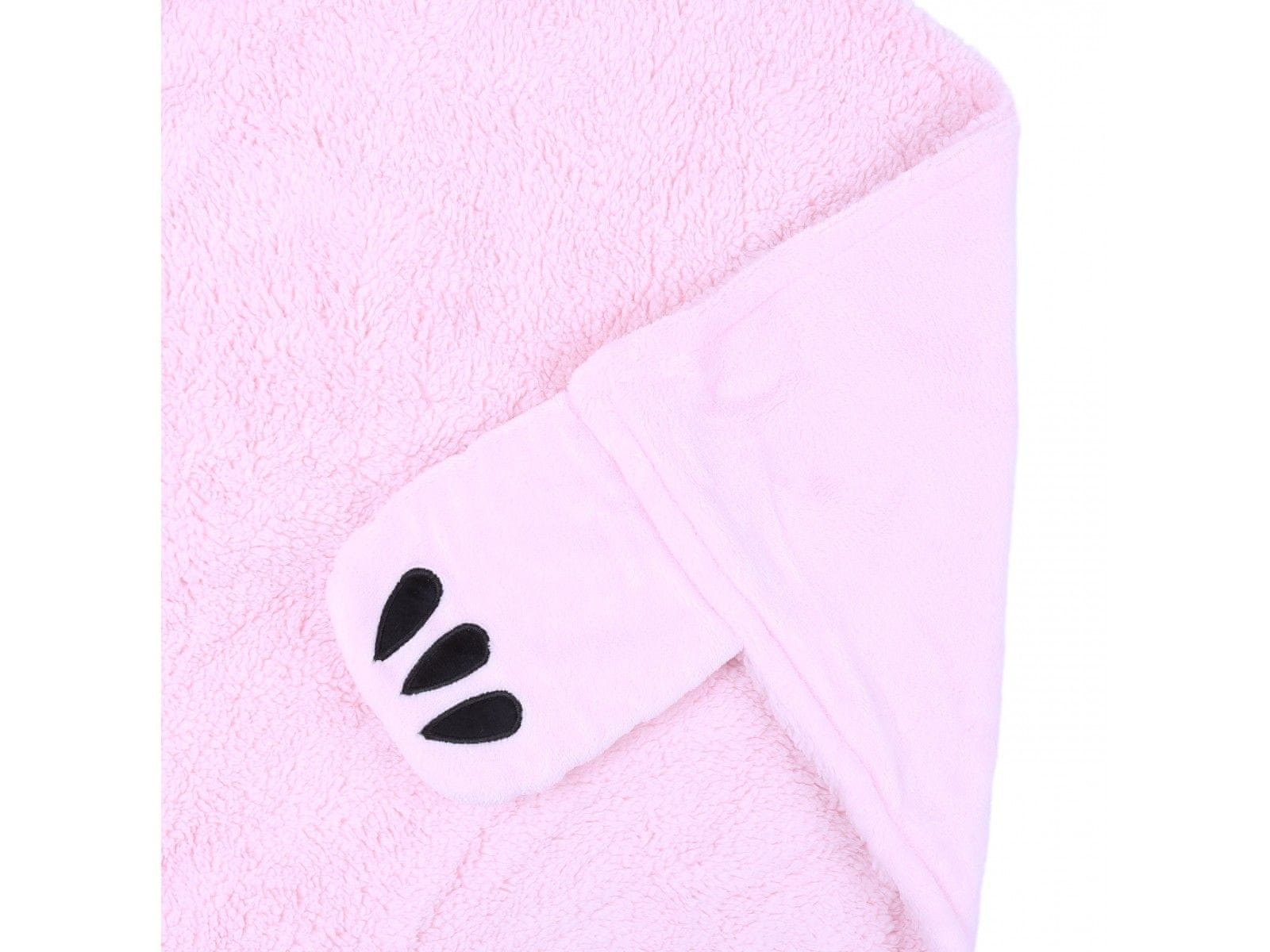 Izdelano iz flis materiala, notranjost pa je obložena s toplo plastjo roza sherpe. Odlično se obnese tudi kot odeja ali kopalni plašč, idealno darilo.