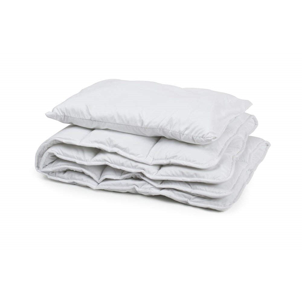 Otroški posteljni set GIOCO, odeja 90 × 130 cm (400 gr.), vzglavnik 40 × 60 cm (250 gr.), zgornji del iz belih mikrovlaken, polnilo silikoniziran poliester. Izdelano v EU.