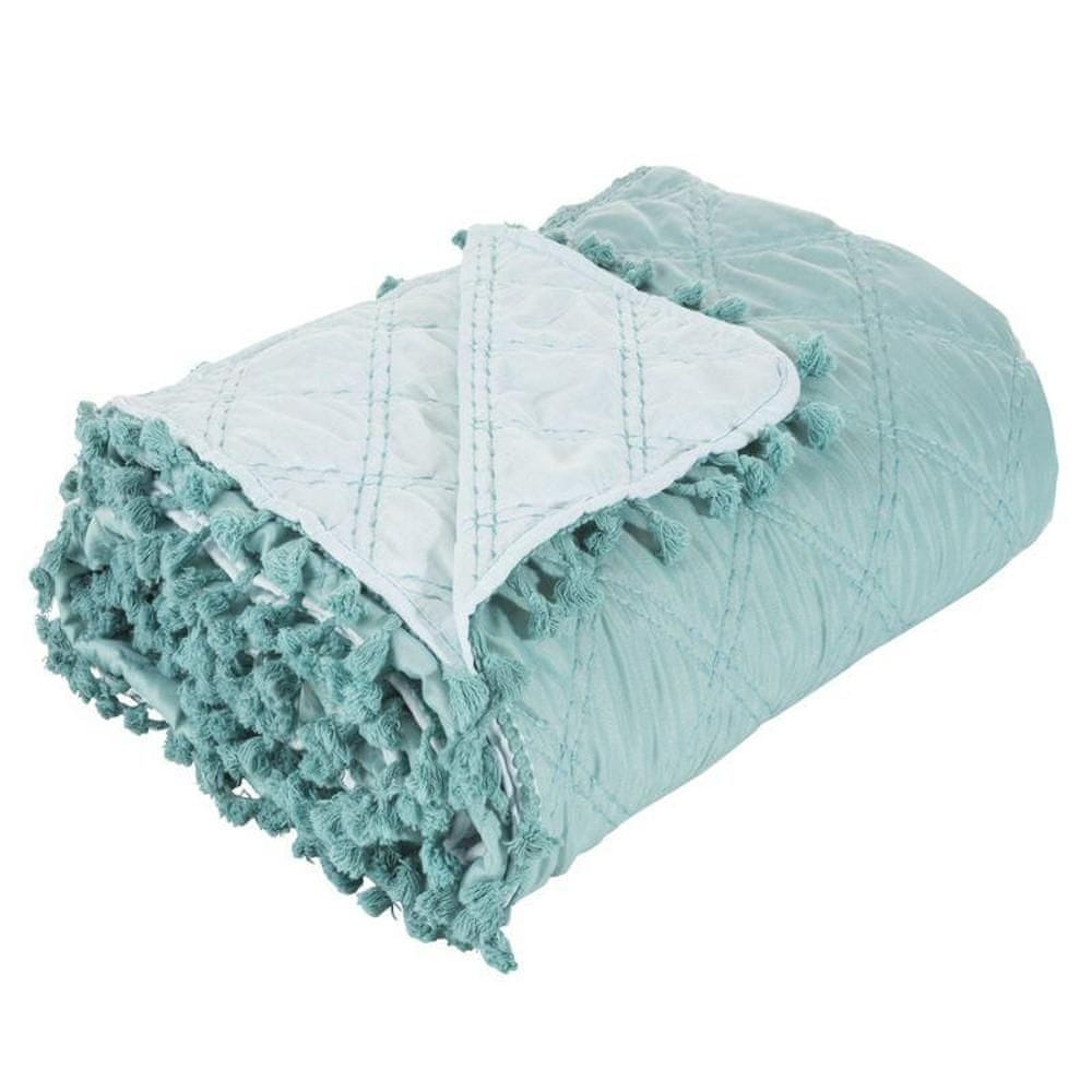 Enobarvno tradicionalno posteljno pregrinjalo, prešito z vzorcem dvojne kontrole. Robovi so okrašeni z majhnimi trepalnicami. Lahko se pere v pralnem stroju. Širina: 220 cm, dolžina: 240 cm, barva: meta, teža: 70+120 GSM, sestava: 100 % poliester