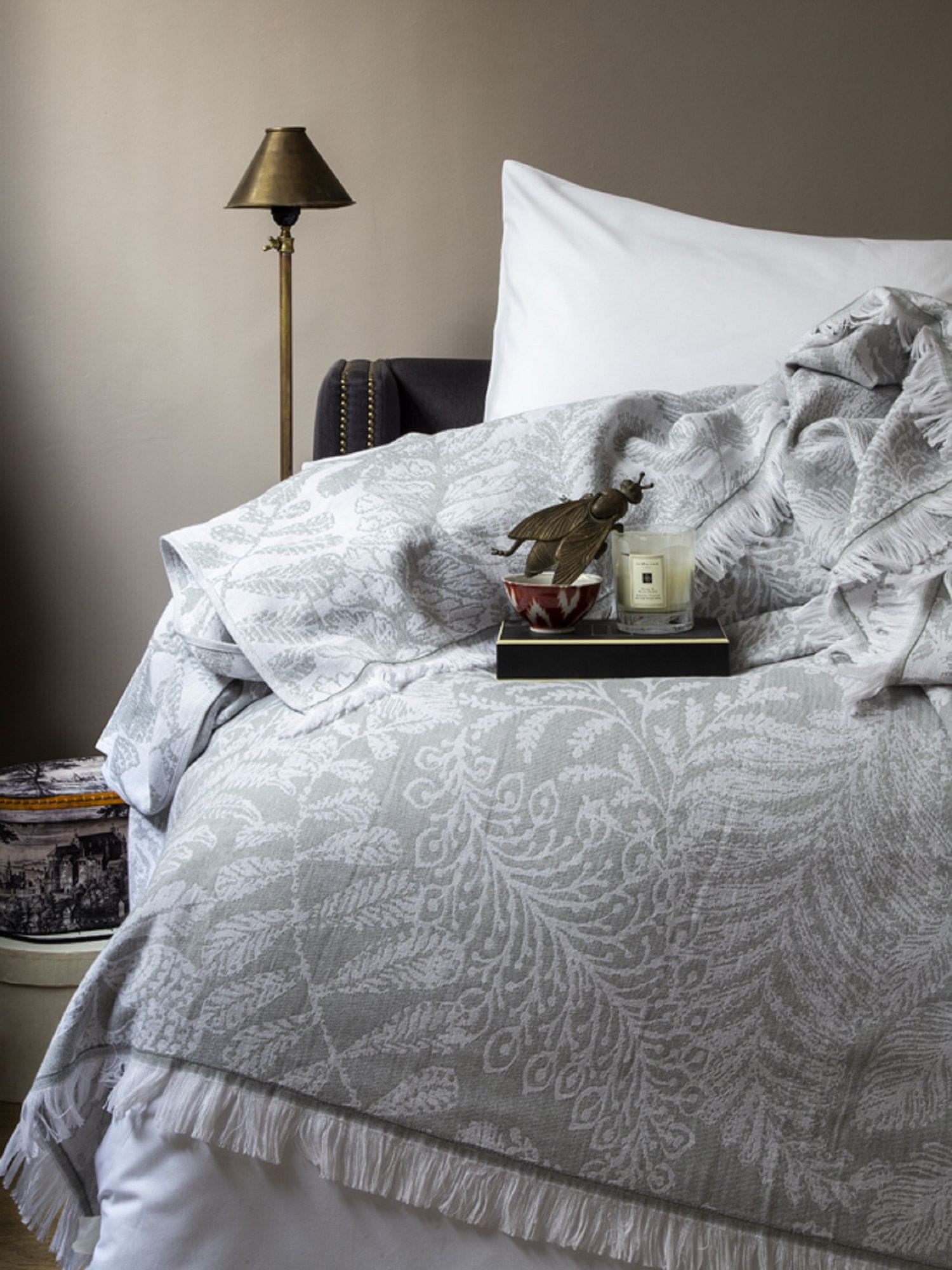 Privoščite si čudovito bombažno pregrinjalo GARDENIERE z nežnim vzorcem v cvetličnem slogu v elegantnem sivem odtenku.