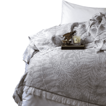 Privoščite si čudovito bombažno pregrinjalo GARDENIERE z nežnim vzorcem v cvetličnem slogu v elegantnem sivem odtenku. Lep vzorec na pregrinjalu je izdelan s tkanjem žakardne tkanine, ne barvan! Celoten opis