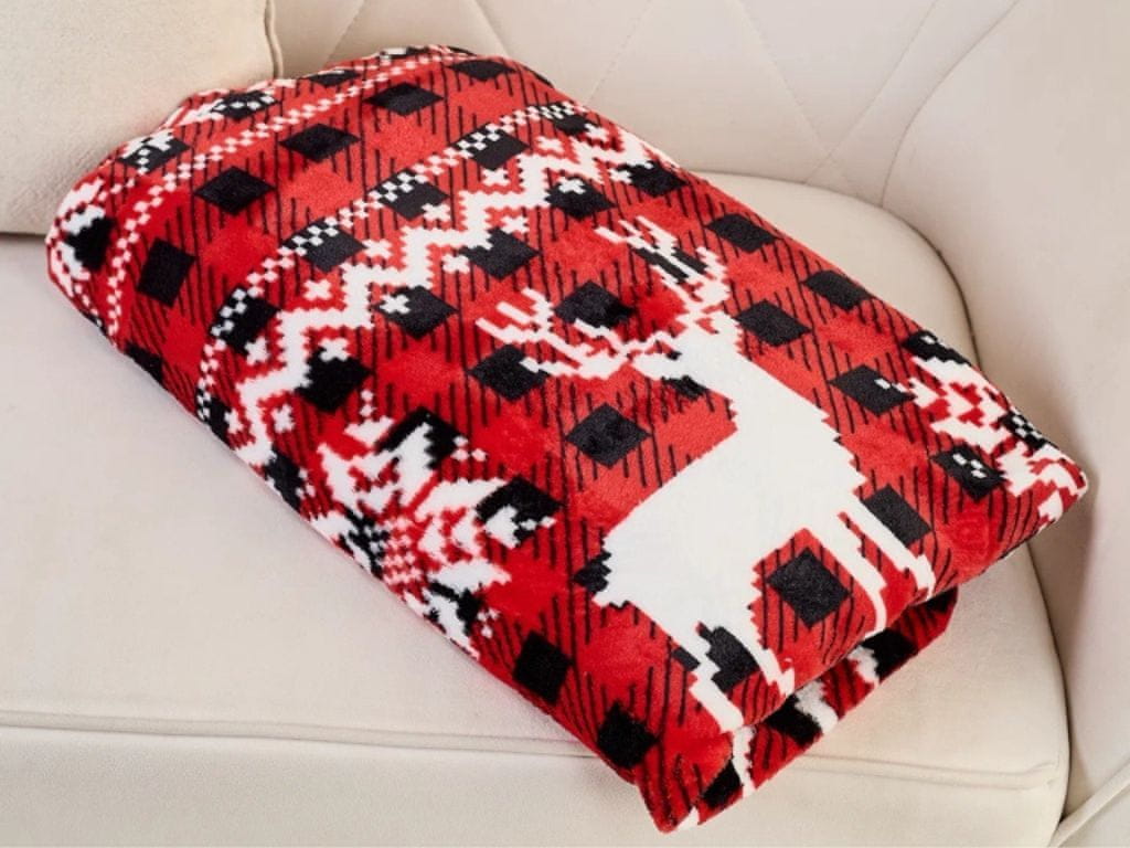 Božična mikroplišasta odeja NORDIC DEERS v rdeči barvi bo v vaš dom prinesla toplo čarobnost zimskih praznikov. Tradicionalni nordijski vzorec v kombinaciji z motivom severnih jelenov in priljubljenim karo vzorcem bo ustvaril prijetno vzdušje in postal eleganten dodatek med adventnimi in božičnimi v
