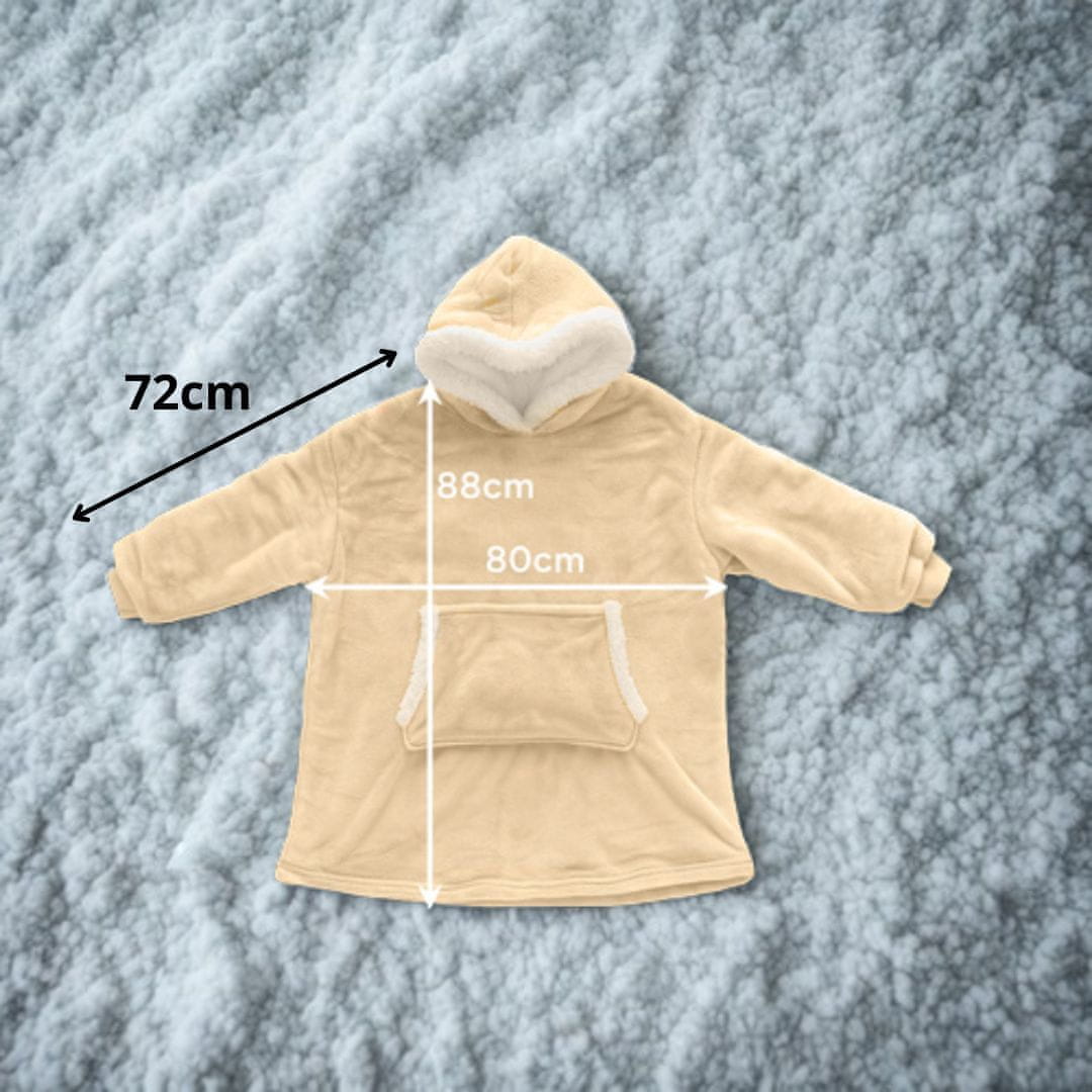 Topla pulover odeja s kapuco in rokavi – hoodie odeja bež Celoten opis