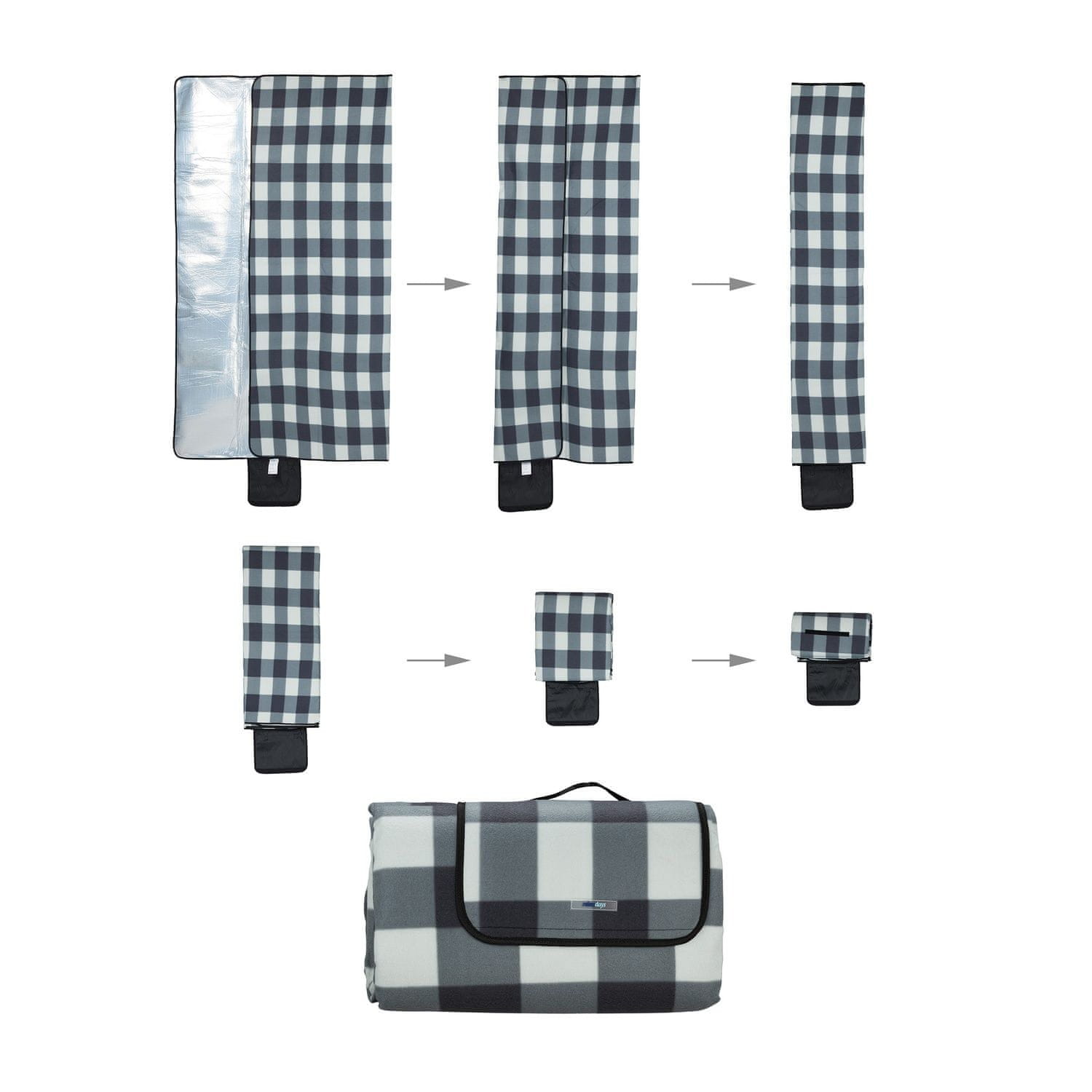 Odeja za piknik ponuja udobje in toplino za aktivnosti na prostem, ima zgornji del iz mehkega flisa in spodnjo stran iz aluminija, odpornega na vlago.