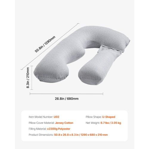 VEVOR Vzglavnik za nosečnost v obliki črke U za celotno telo 129x68x21 cm mehak