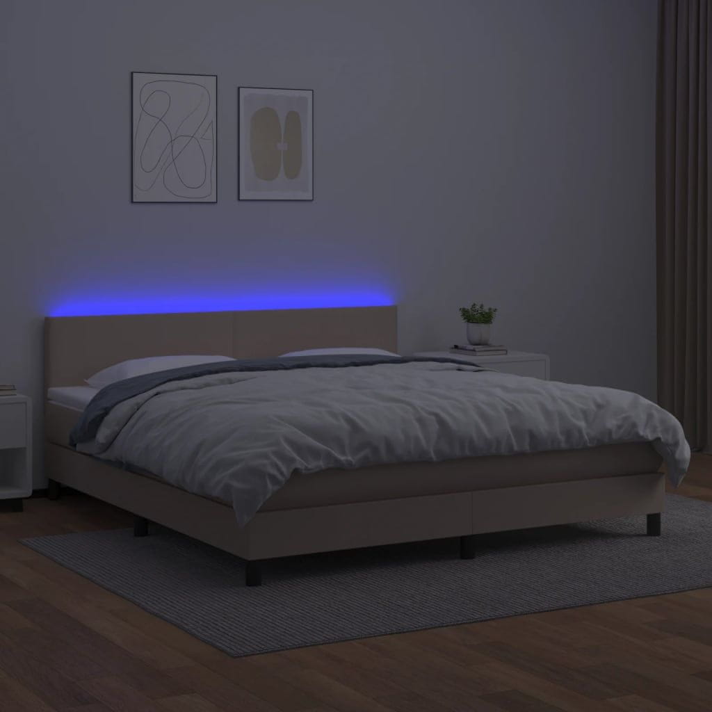 Vidaxl Box spring postelja vzmetnico LED kapučino 180x200 cm um. usnje