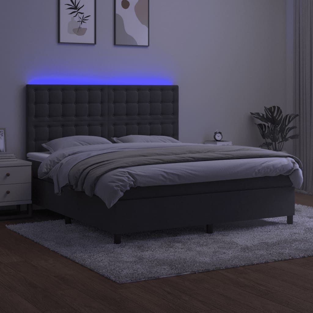 Vidaxl Box spring postelja z vzmetnico LED temno siva 160x200 cm žamet