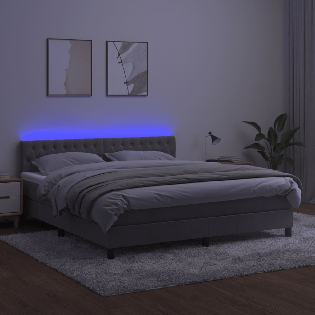 Vidaxl Box spring postelja z vzmetnico LED svetlo siva 160x200cm žamet