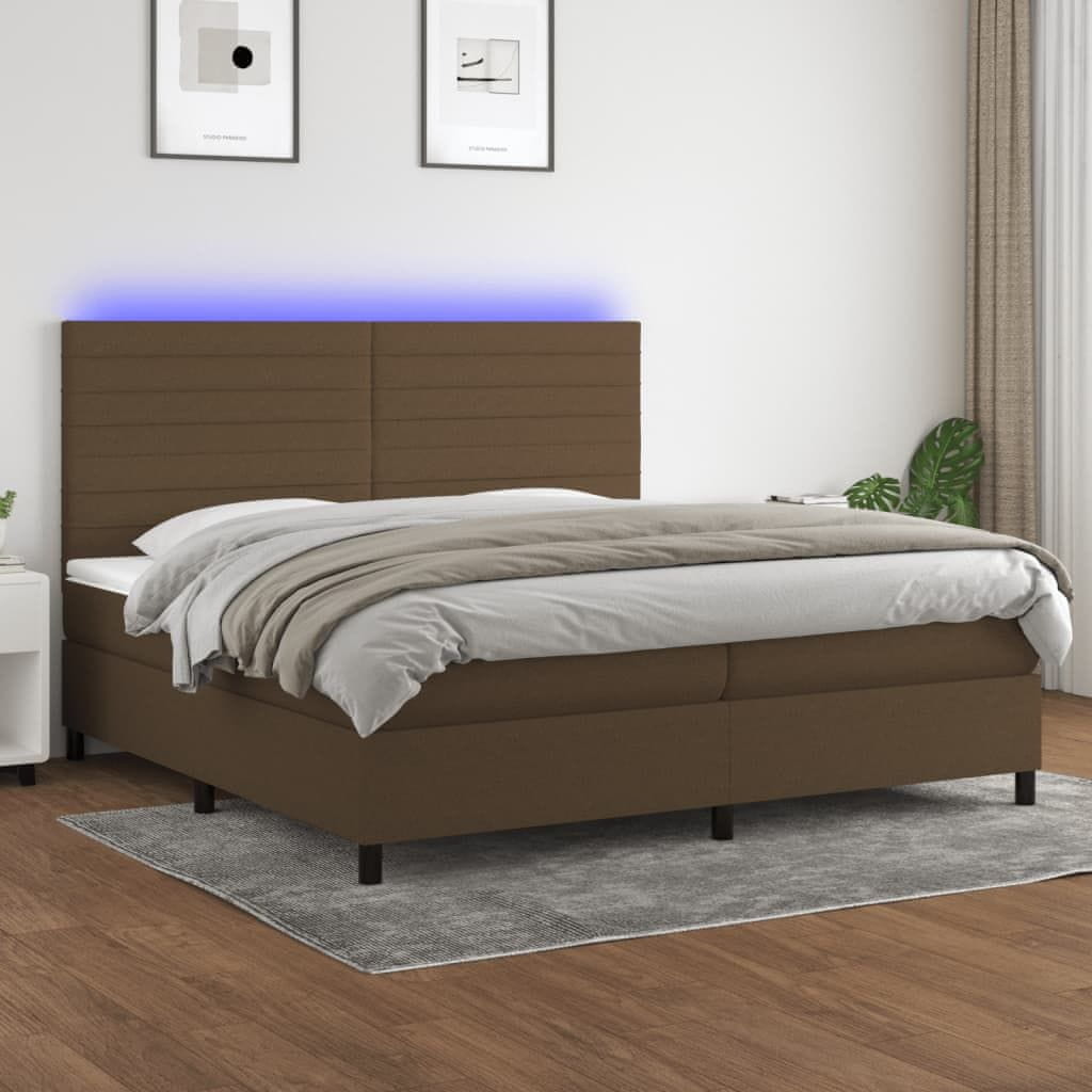 Vidaxl Box spring postelja z vzmetnico LED temno rjava 200x200cm blago