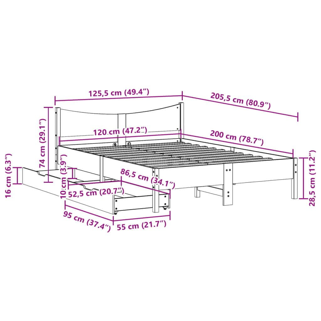 Vidaxl Posteljni okvir s predali bel 120x200 cm trdna borovina