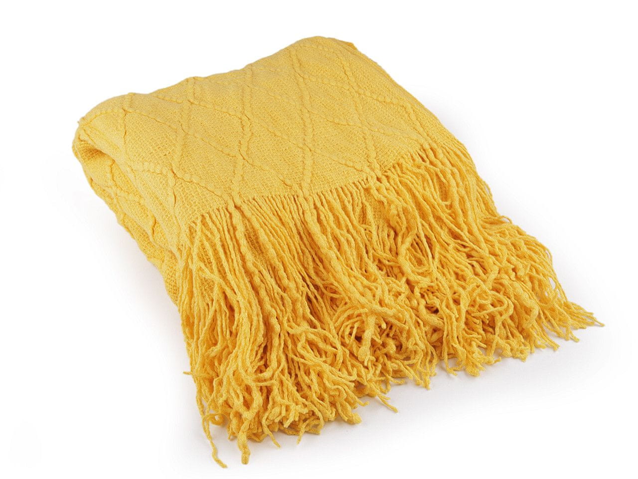 Pletena odeja / pregrinjalo z naramnicami 130x155 cm - gorčica