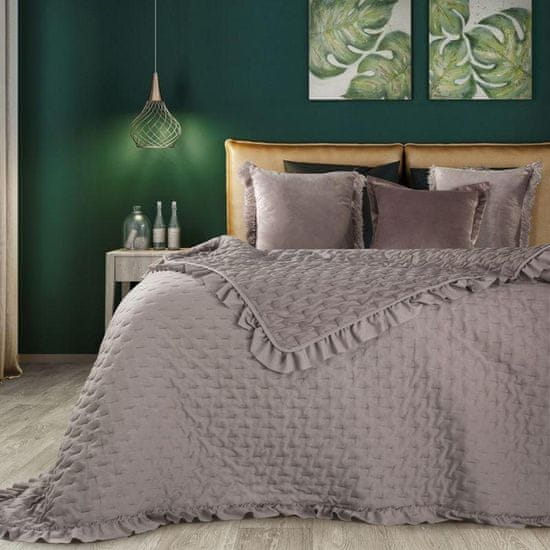 Klasično posteljno pregrinjalo iz mehkih in prijetnih mikrovlaken, okrašeno s prefinjenim brezšivnim prešitjem hotpress. Širina: 220 cm, dolžina: 240 cm, barva: pudrasto rožnata, teža: 80+70+120 GSM, sestava: 100 % poliester, material: poliester 100 % poliester
