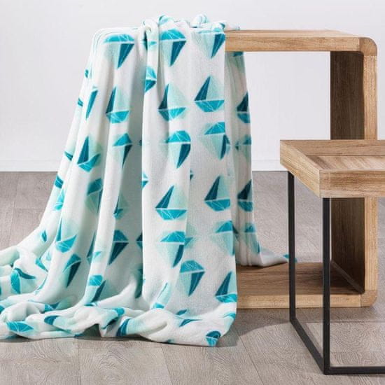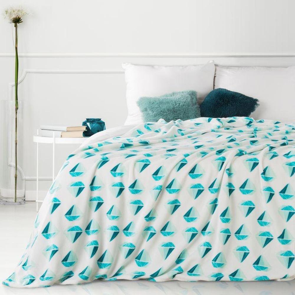 Mehka odeja iz lahkih in trpežnih mikrovlaken. Zaradi uporabe finih vlaken s tehnologijo mikroflano je neverjetno mehka in odporna na pranje. Širina: 150 cm, dolžina: 200 cm, barva: bela/turkizna, teža: 240 GSM, sestava: 100 % poliester