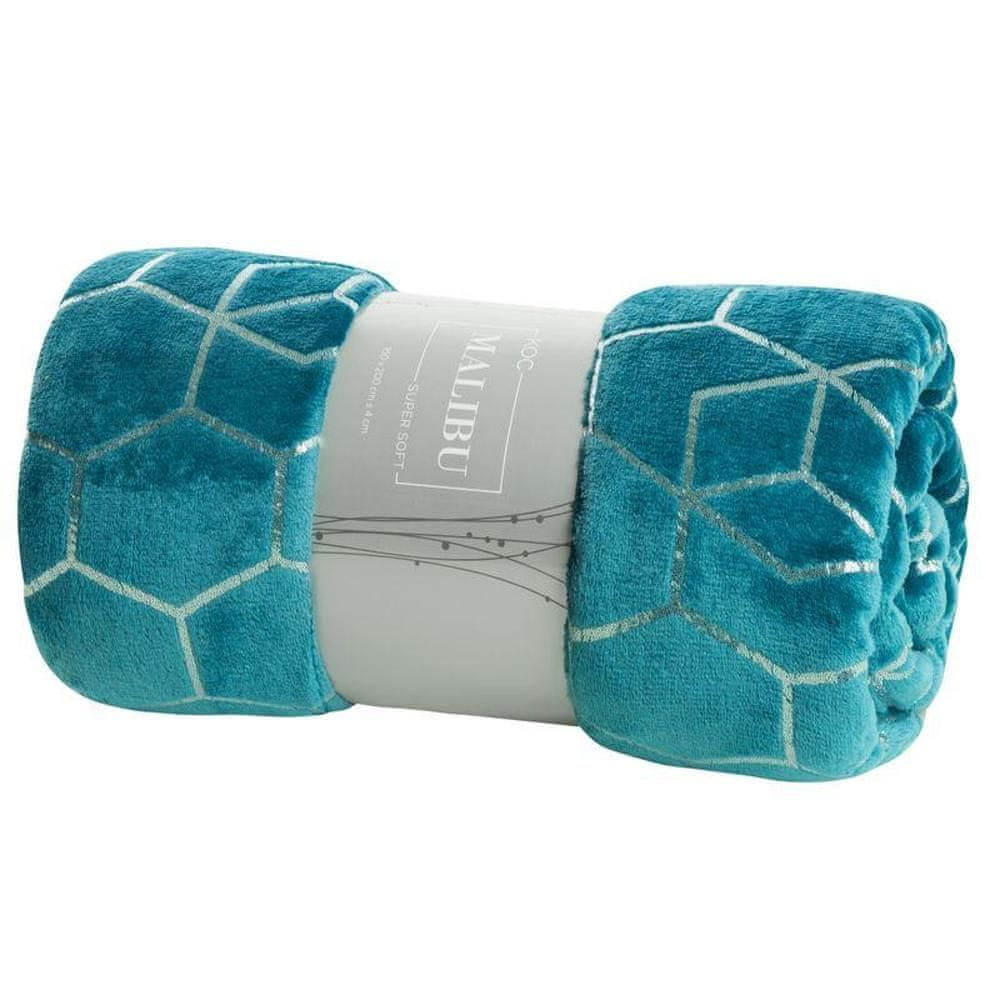 Flano odeja zelo mehka na dotik s svetlečim potiskom širina: 150 cm, dolžina: 200 cm, barva: temno turkizna/srebrna, teža: 250 GSM, sestava: 100 % poliester