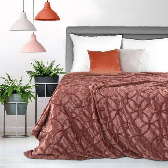 Na otip prijetno pregrinjalo z mehko krzneno strukturo, reliefno odeto v geometrijski vzorec križajočih se krogov. Spodnji del je podložen z gladkim flisom. Širina: 170 cm, dolžina: 210 cm, barva: marsala, teža: 260GSM GSM, sestava: 100 % poliester