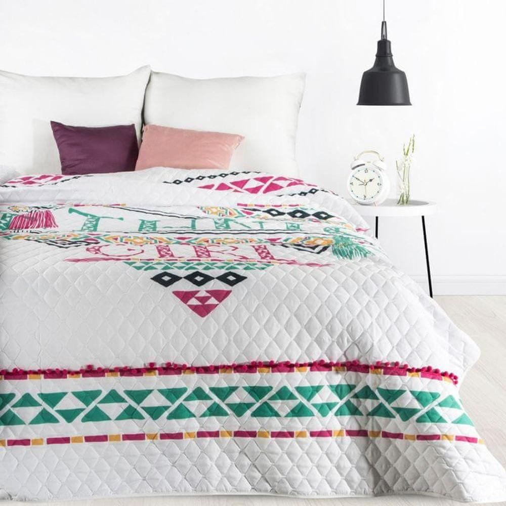Prevleka združuje sodoben slog in barve z etničnimi vzorci. Končano s cevmi iz pompa. Prešivanje je bilo izvedeno z brezšivno metodo vročega tiska. Širina: 170 cm, dolžina: 210 cm, barva: večbarvna, teža: 75+75+120 GSM, sestava: 100 % poliester