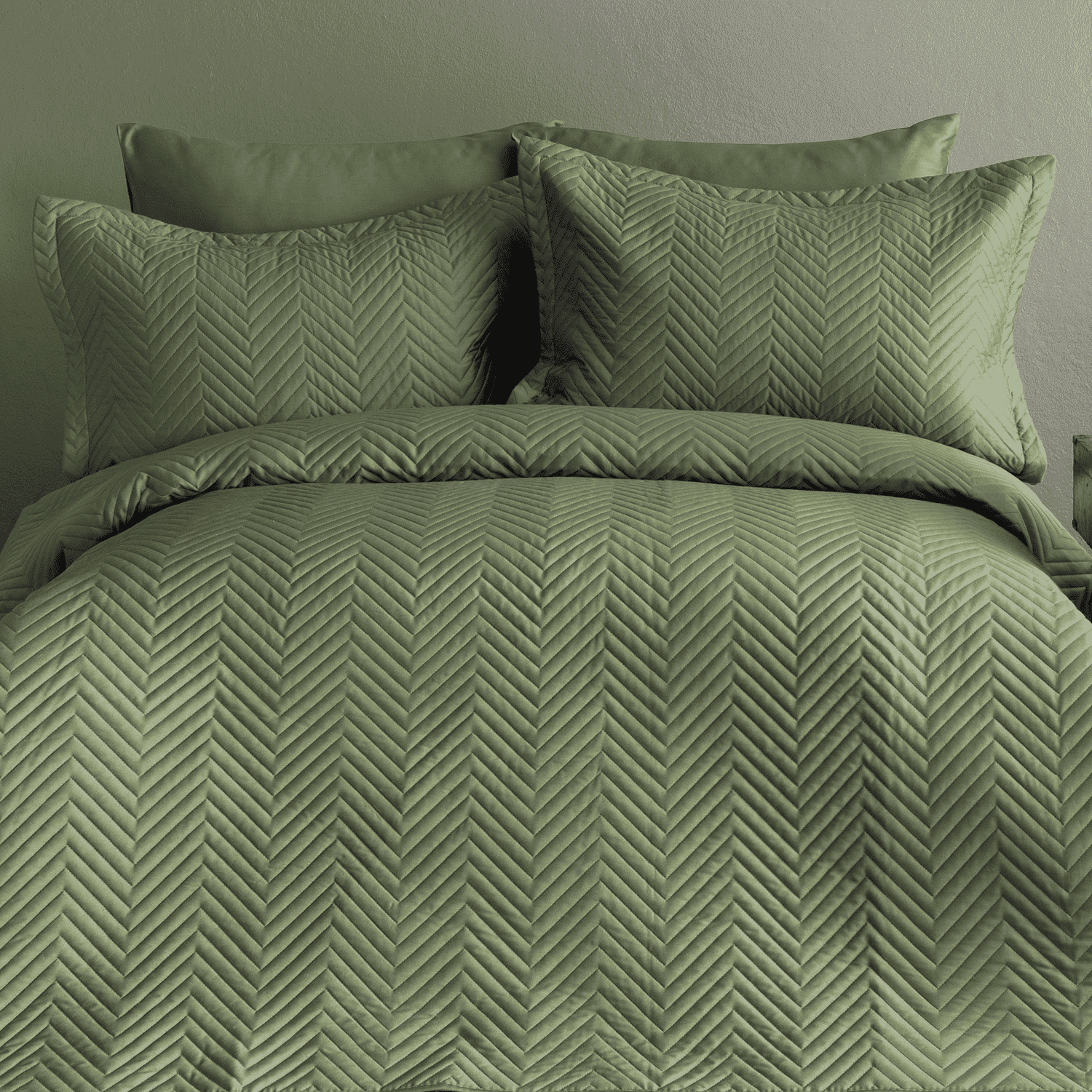 Bogata oljčno zelena barva doda vaši spalnici pridih elegance in naravne topline, kar jo naredi idealno za sodobne ali klasične interierje. Set vsebuje 2 prevleki za blazine v Oxford slogu, ki zagotovita popoln in prefinjen videz.