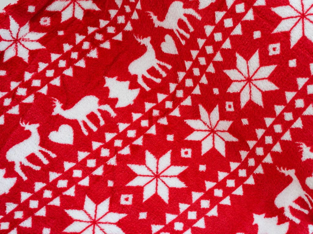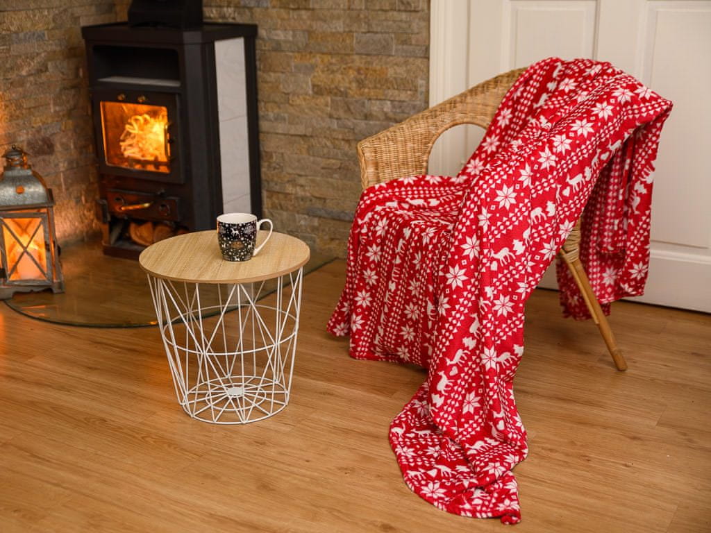 Ljubki dom Rdeča božična mikropliš deka JELEN IN SNEŽINKA, 180x200 cm