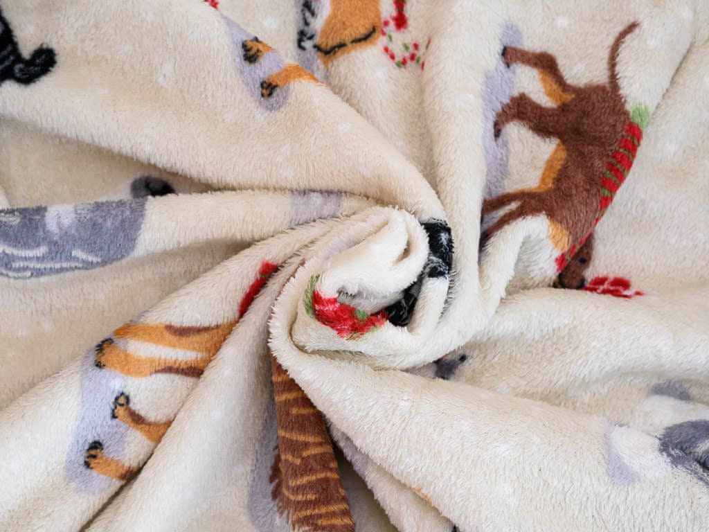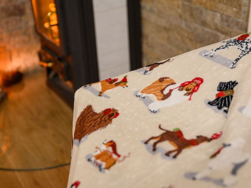 Ljubki dom Smetanasta božična mikropliš deka BOŽIČNI PSI, 150x200 cm