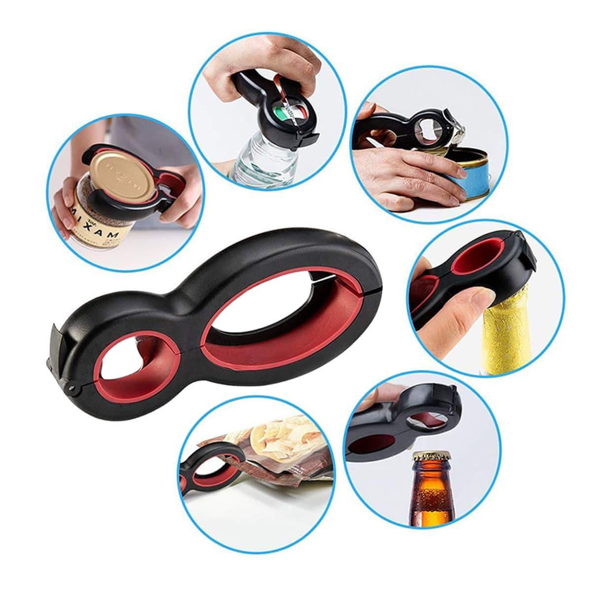 Ali imate težave z odpiranjem pločevink in steklenic? S tem večnamenskim odpiračem za pločevinke postane igrivo enostavno odpiranje več vrst embalaže. Kuhinjski pripomoček je zasnovan kot številka osem, uporabite pa lahko obe strani glede na vrsto embalaže, ki jo želite odpreti. Odpirač pločevink deluje tako za navojne zamaške različnih velikosti kot za zamaške in zamaške za manjše steklenice. Orodje lahko uporabite tudi za odpiranje na primer pločevink z barvami in plastičnih vrečk. Zahvaljujoč materialu, iz katerega je orodje, je varno in udobno za držanje.